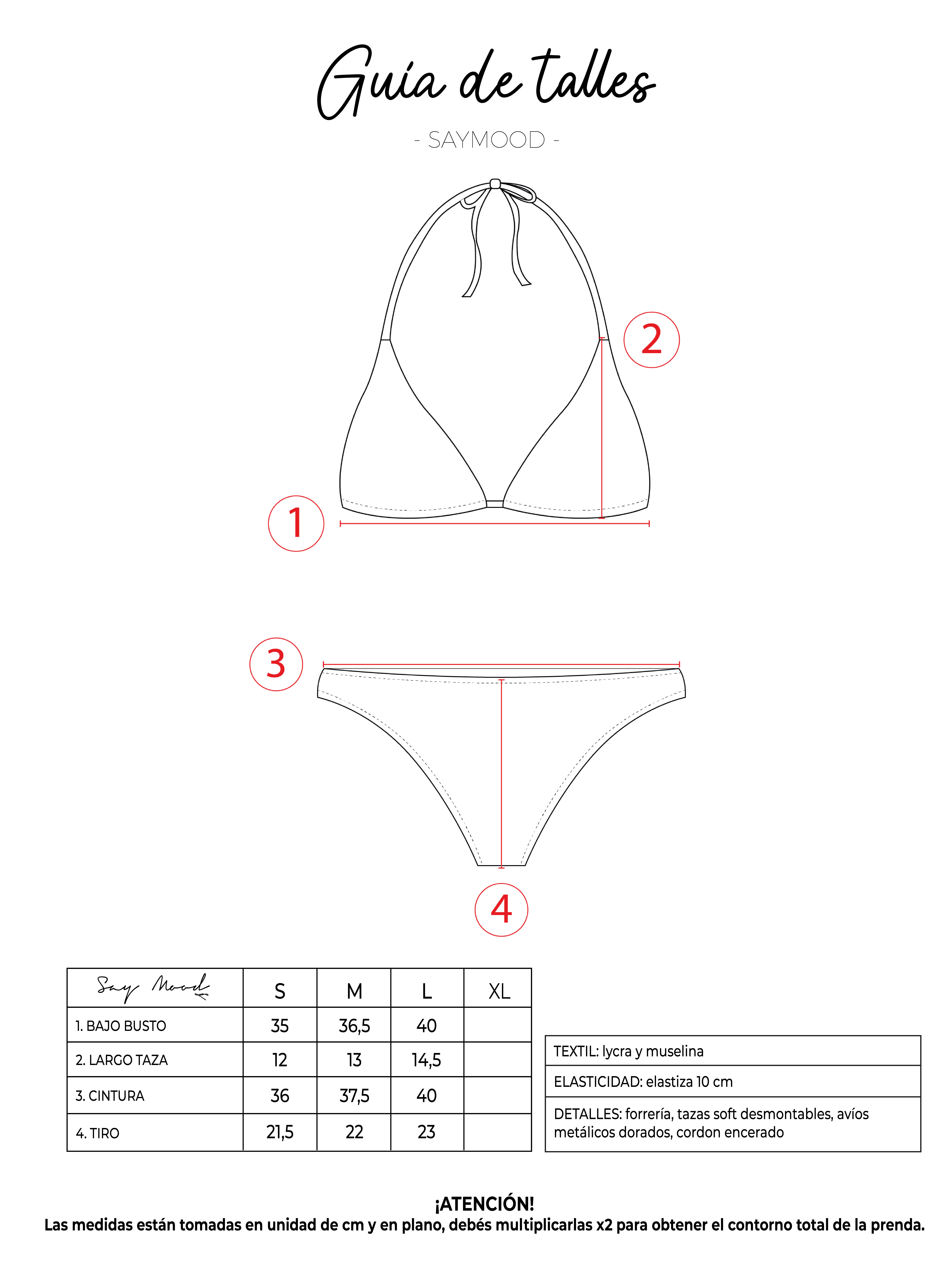 SAYTIPS: chequeá con atención nuestra tabla de talles para encontrar el que mejor vaya con vos. Podés tomar como referencia una prenda similar que tengas para mayor seguridad 😉