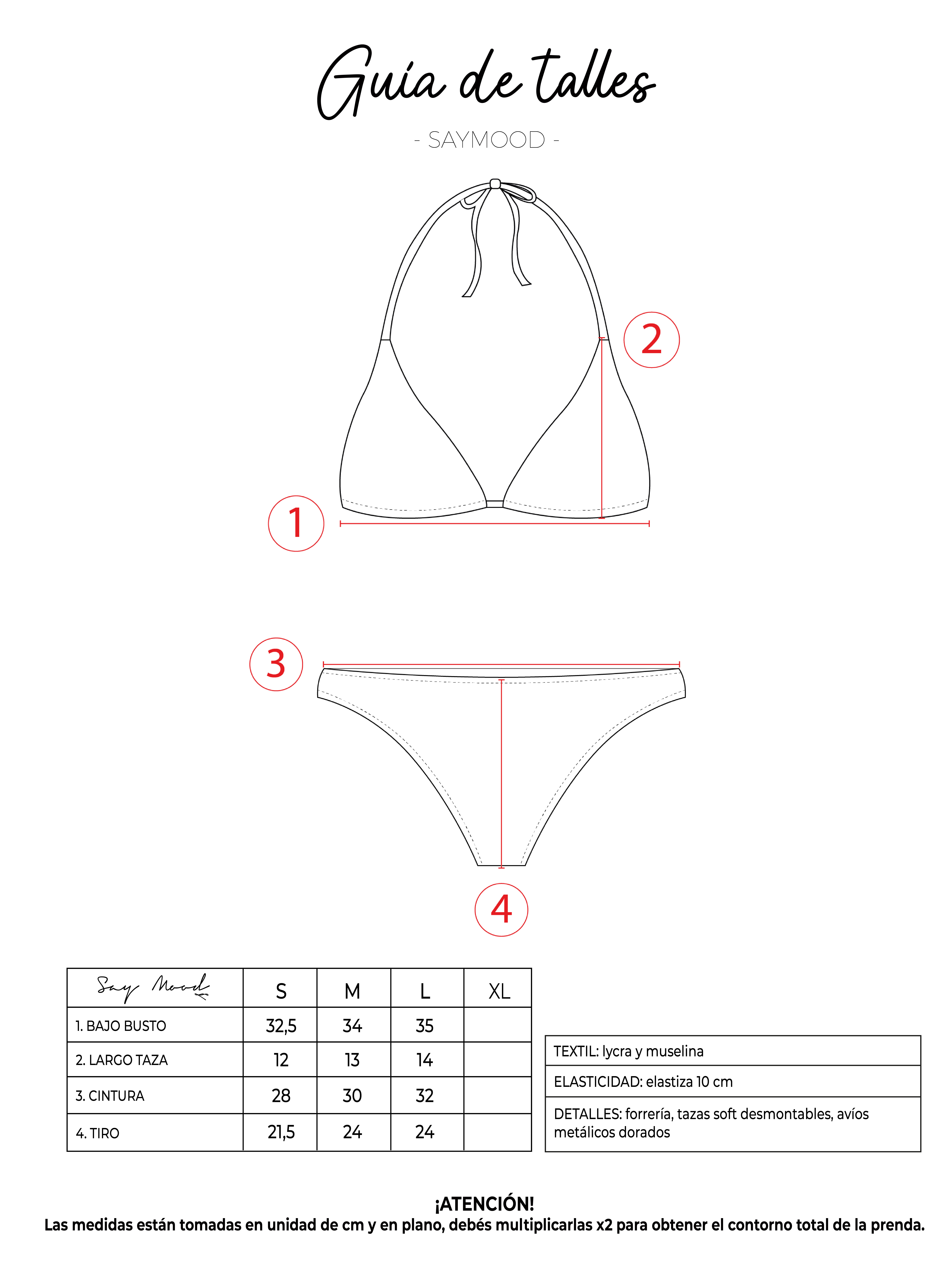 SAYTIPS: chequeá con atención nuestra tabla de talles para encontrar el que mejor vaya con vos. Podés tomar como referencia una prenda similar que tengas para mayor seguridad 😉