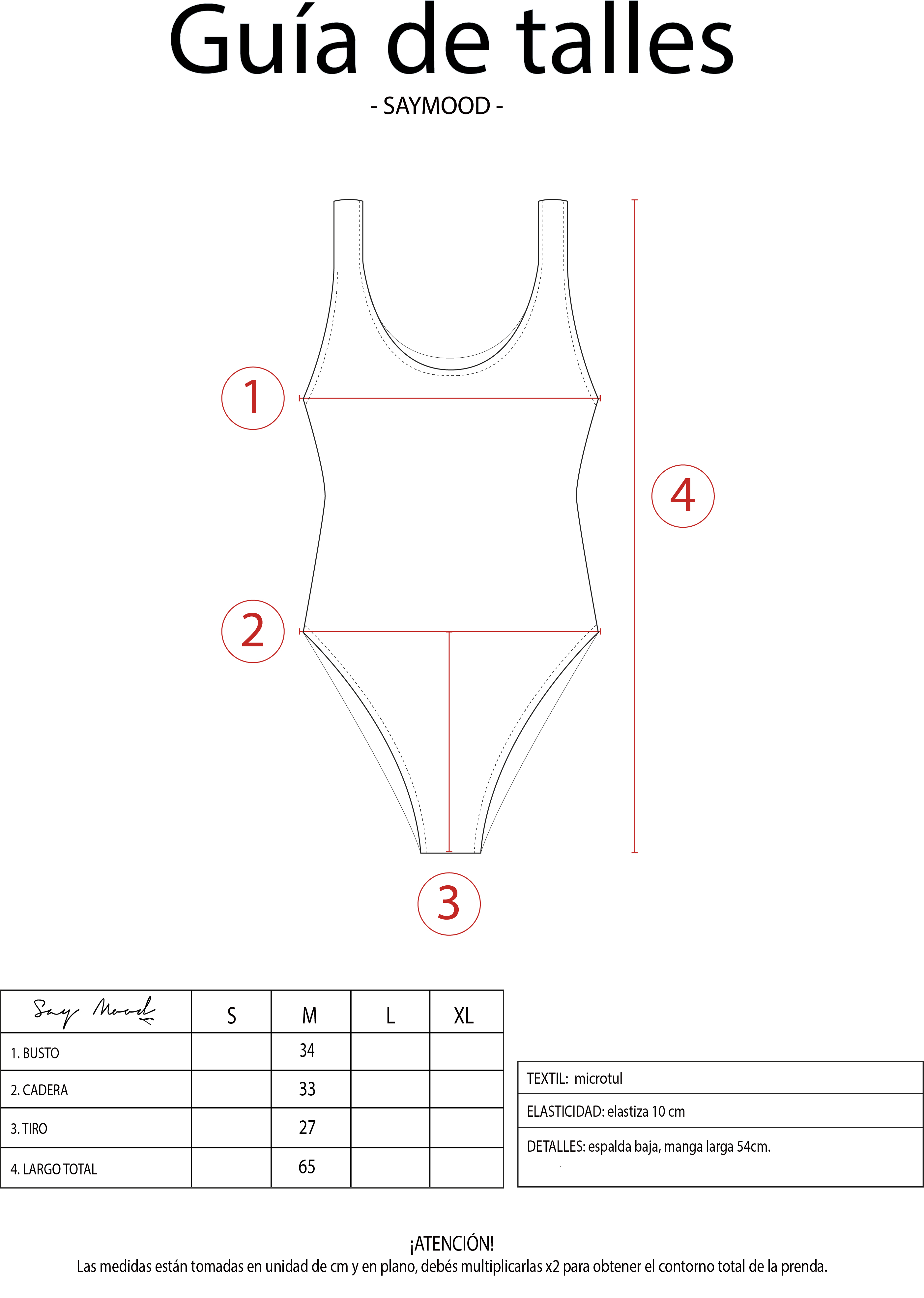 SAYTIPS: chequeá con atención nuestra tabla de talles para encontrar el que mejor vaya con vos. Podés tomar como referencia una prenda similar que tengas para mayor seguridad 😉 hey! la modelo viste un corpiño bajo el body Gala, no incluído en este producto.