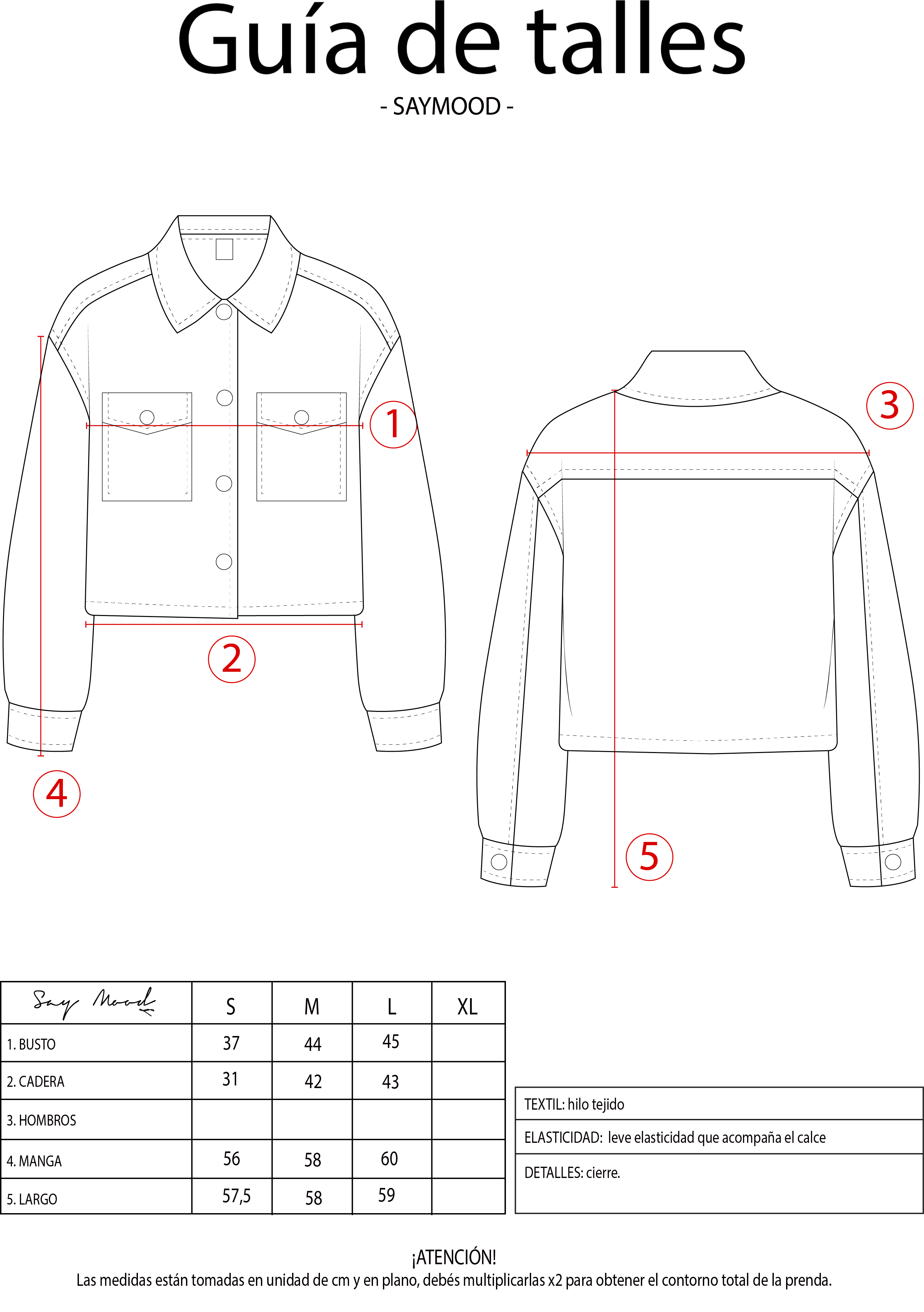 SAYTIPS: chequeá con atención nuestra tabla de talles para encontrar el que mejor vaya con vos. Podés tomar como referencia una prenda similar que tengas para mayor seguridad 😉