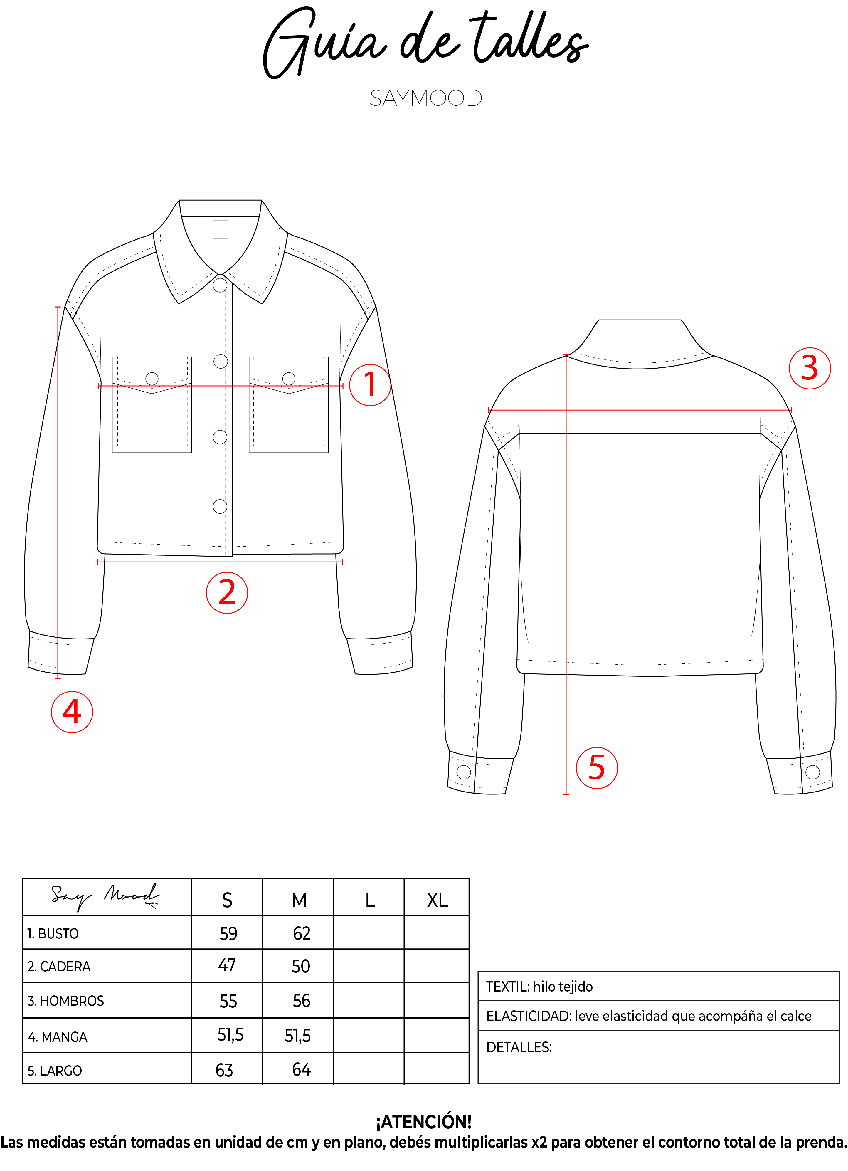 SAYTIPS: chequeá con atención nuestra tabla de talles para encontrar el que mejor vaya con vos. Podés tomar como referencia una prenda similar que tengas para mayor seguridad 😉