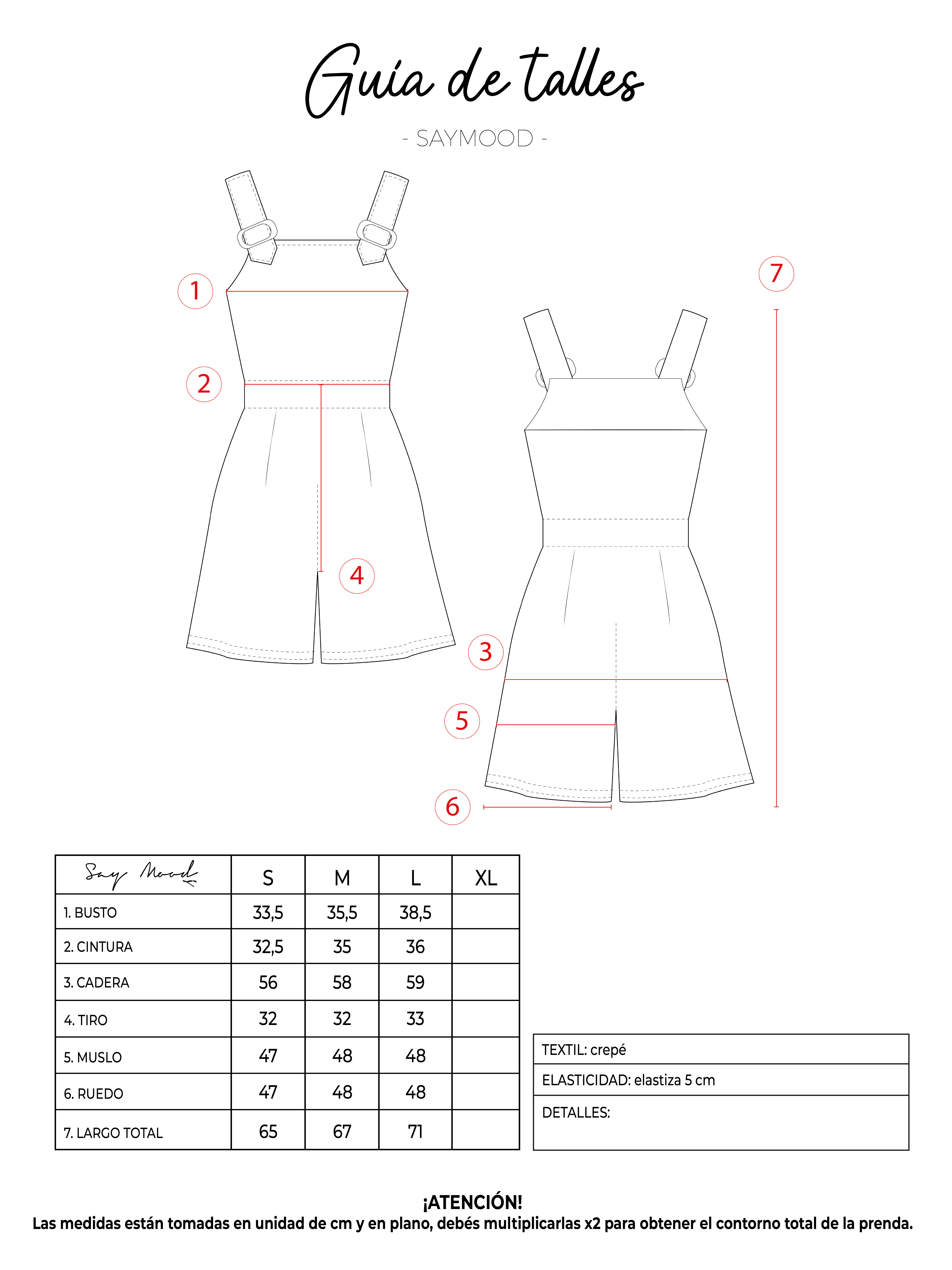 Say Night 🌙 Jass es una prenda súper delicada! este mono además de ser cómodo, te viste sofisticada y tiene los mejores detalles ❤️ confeccionado en crepé, es ideal para ocasiones especiales y eventos. Silueta anatómica sobre el torso, con amplitud estilo falda en el short. Tiro alto, con breteles finos, espalda elastizada y forrería en el busto. Es súper versátil por lo que vas a poder combinarlo con botas, sandalias finas y todo tipo de accesorios! Elegilo para tener en tu colección una prenda que no pasa de moda -