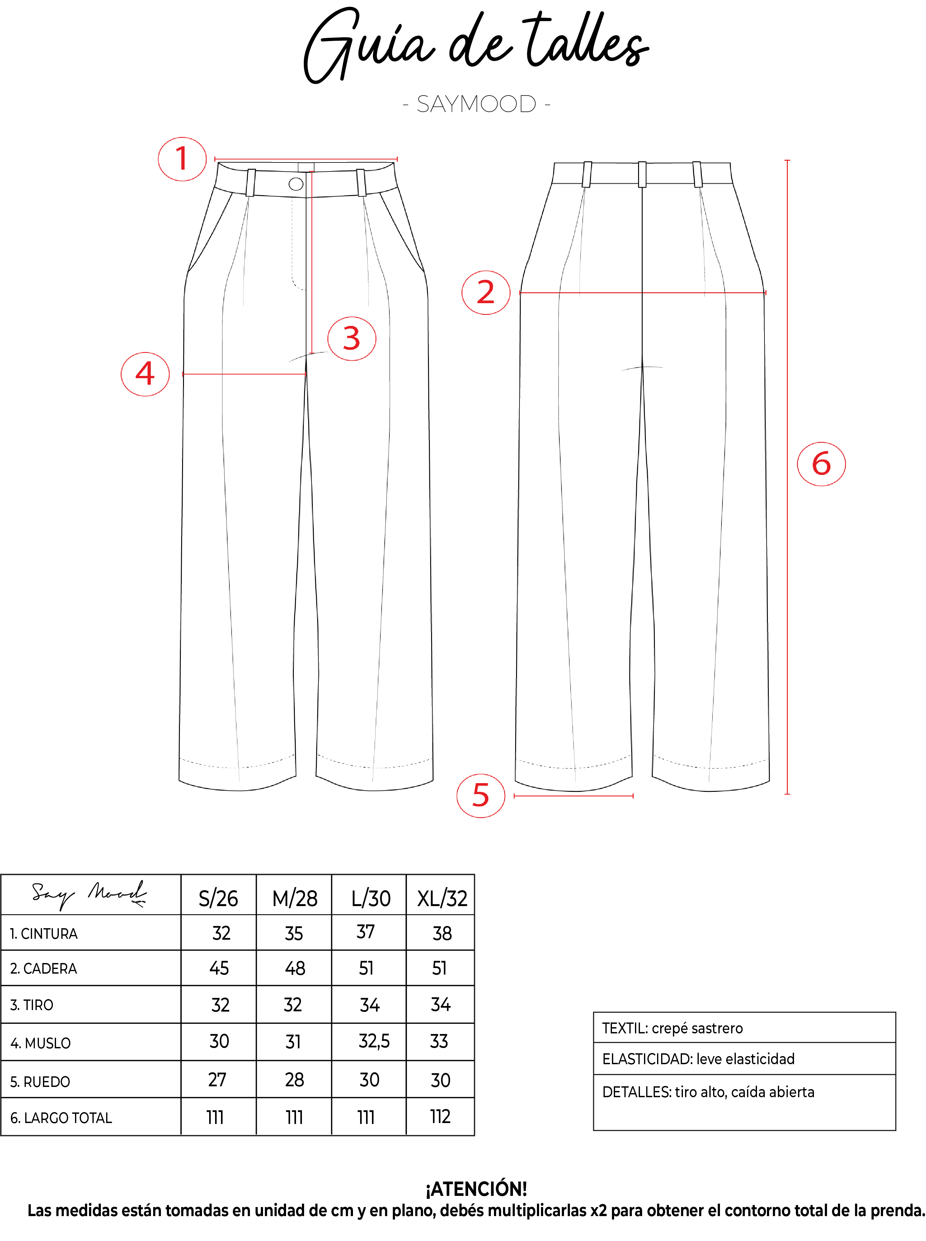 SAYTIPS: chequeá con atención nuestra tabla de talles para encontrar el que mejor vaya con vos. Podés tomar como referencia una prenda similar que tengas para mayor seguridad.
