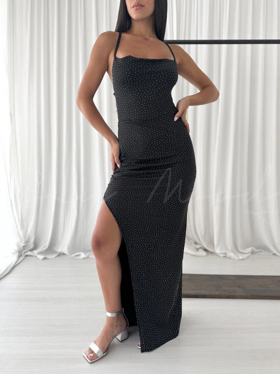 Say Night 🍹 Aurora es la elección perfecta para un evento este verano 🖤 un diseño súper protagonista! confeccionado en lycra de primera calidad, con apliques de strass que lo hacen único 🔥 la silueta es anatómica sobre el torso, con escote redondeado, forrería en la zona del busto y un súper tajo lateral 🔥 además, espalda que se ata y se adapta a tu cuerpo. No solo es súper favorecedor y distinguido, también combina comodidad y elasticidad. Animate a ser el centro de atención 🖤