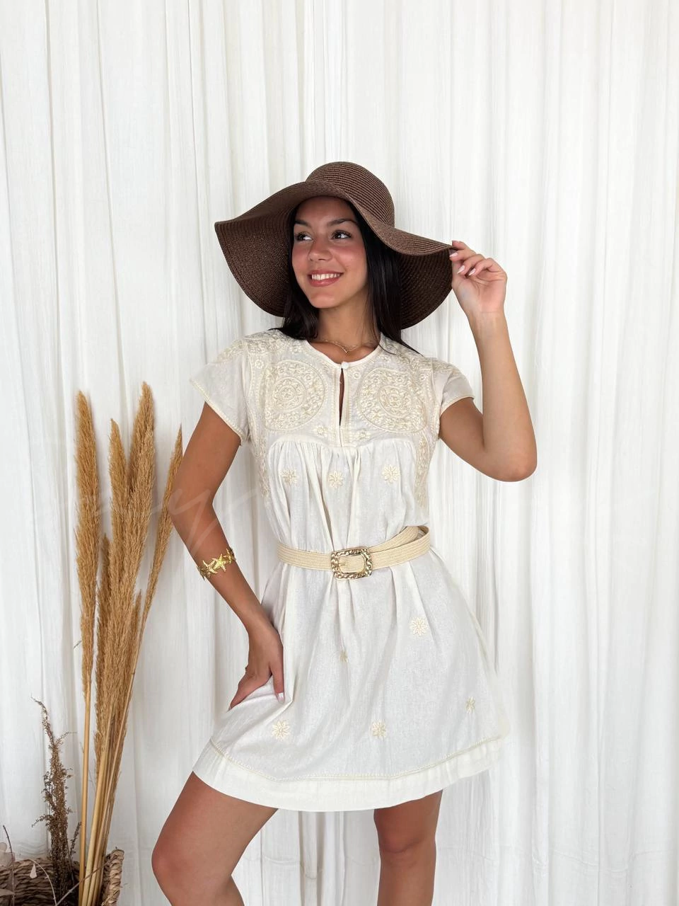 Anticipo de temporada 🤫 para recibir con prendas únicas la nueva temporada... llegó el vestido más romántico ❤️ la silueta es amplia, liviana, con corte sobre el busto para crear más movimiento. Confeccionado en lino de primera calidad, con escote V que podés usar abotonado, y mangas cortas ✨ además, la estrella del diseño es el bordado increíble, que suma una onda bohemia súper tendencia! Amamos este diseño porque se adapta a sandalias para el diario, botas texanas y accesorios para un evento, y mucho más ❤️