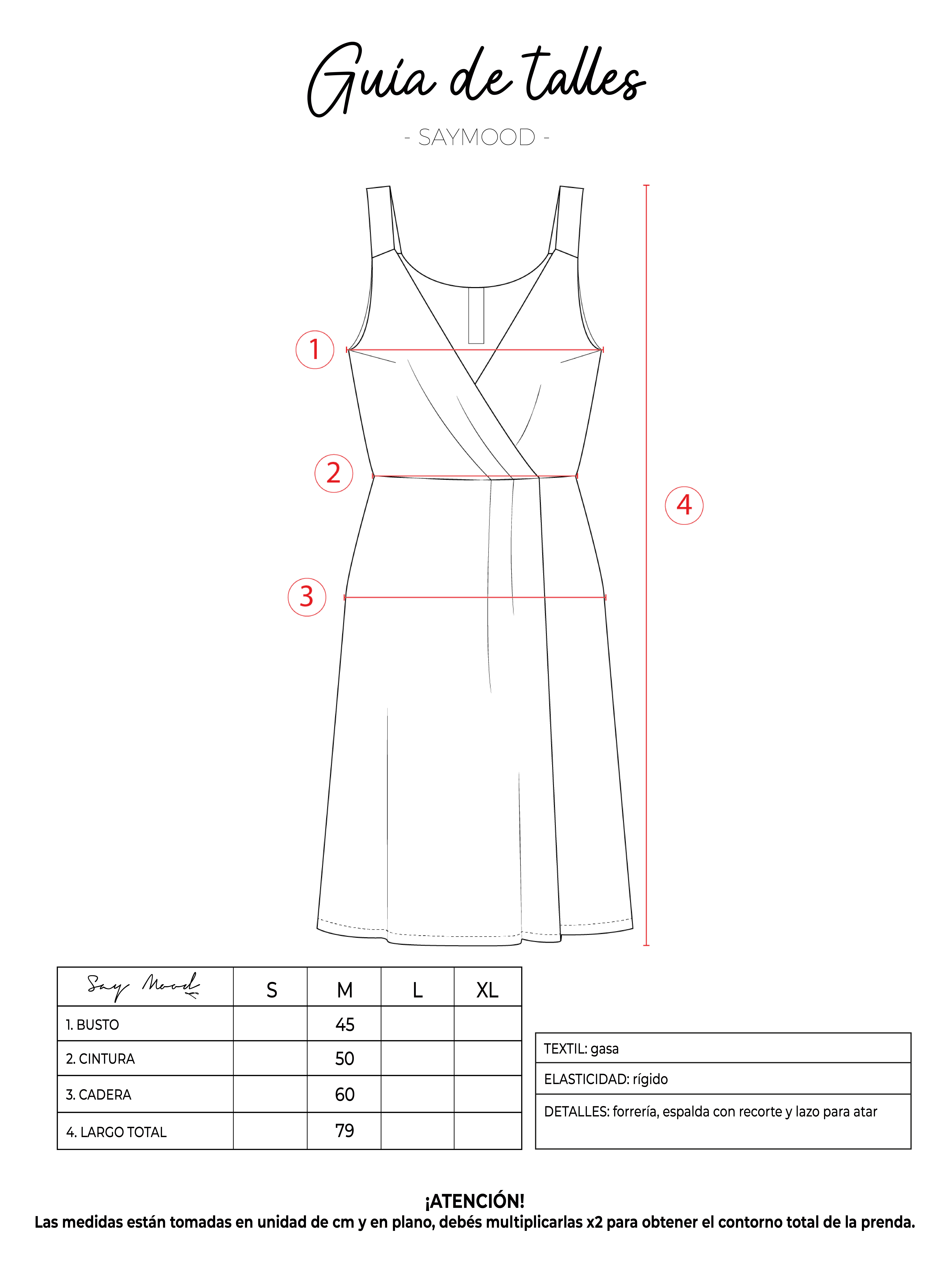 SAYTIPS: chequeá con atención nuestra tabla de talles para encontrar el que mejor vaya con vos. Podés tomar como referencia una prenda similar que tengas para mayor seguridad 😉