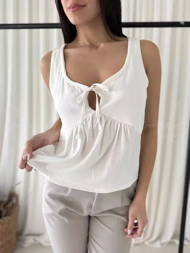 Anticipo de temporada 🤫 de estilo clásico y femenino, Ner está confeccionada en un textil similar al lino... te brinda frescura y crea un look súper delicado. La silueta es liviana, amplia, con escote V que podés atar y también regular a tu gusto! te permite darle el estilo que quieras 🔥 Esta prenda es perfecta para looks diarios súper prolijos... combina con lo que quieras ❤️✨ esta es una oportunidad única de anticiparte a los días cálidos -