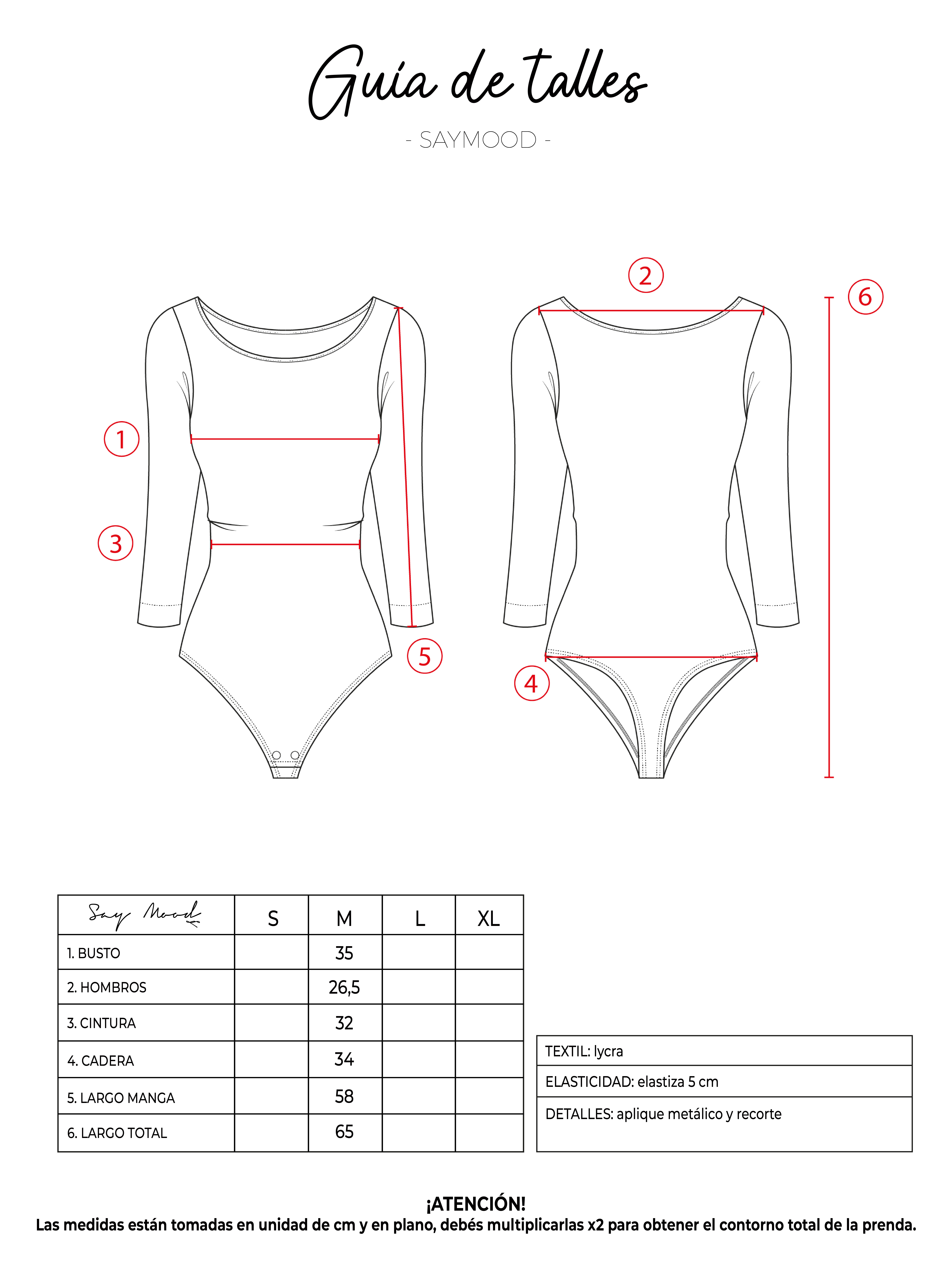 SAYTIPS: chequeá con atención nuestra tabla de talles para encontrar el que mejor vaya con vos. Podés tomar como referencia una prenda similar que tengas para mayor seguridad 😉