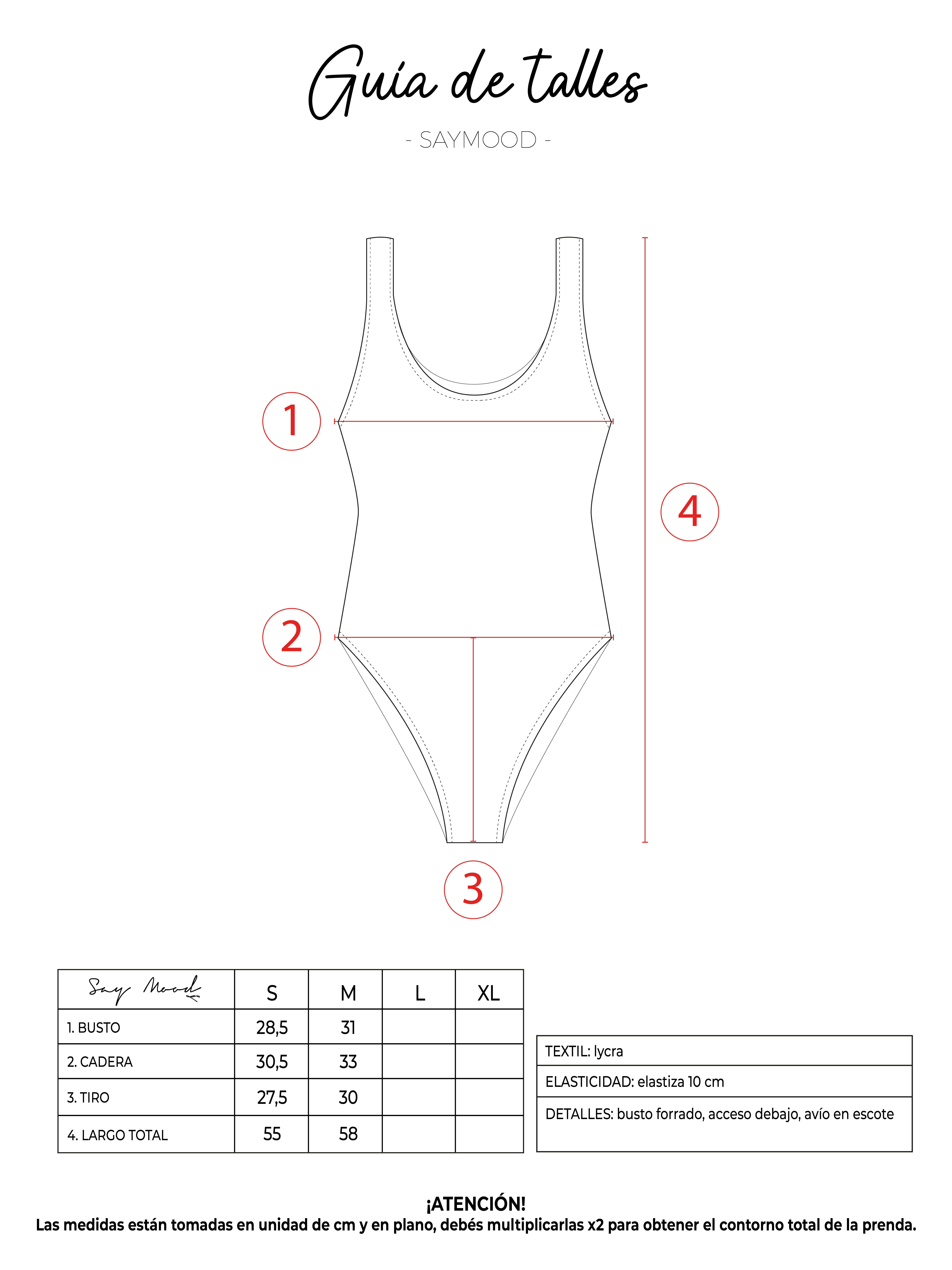 SAYTIPS: chequeá con atención nuestra tabla de talles para encontrar el que mejor vaya con vos. Podés tomar como referencia una prenda similar que tengas para mayor seguridad 😉
