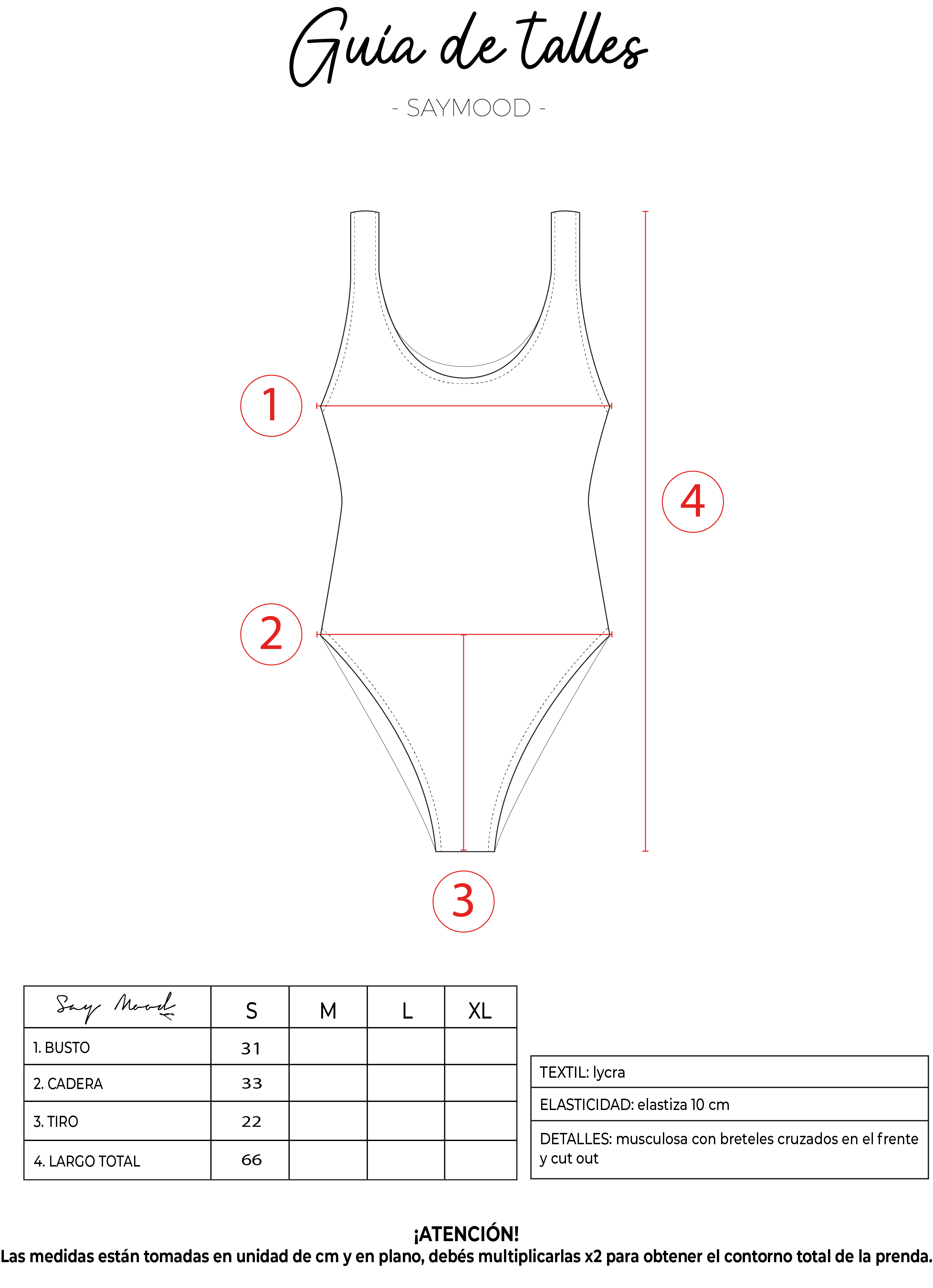SAYTIPS: chequeá con atención nuestra tabla de talles para encontrar el que mejor vaya con vos. Podés tomar como referencia una prenda similar que tengas para mayor seguridad 😉