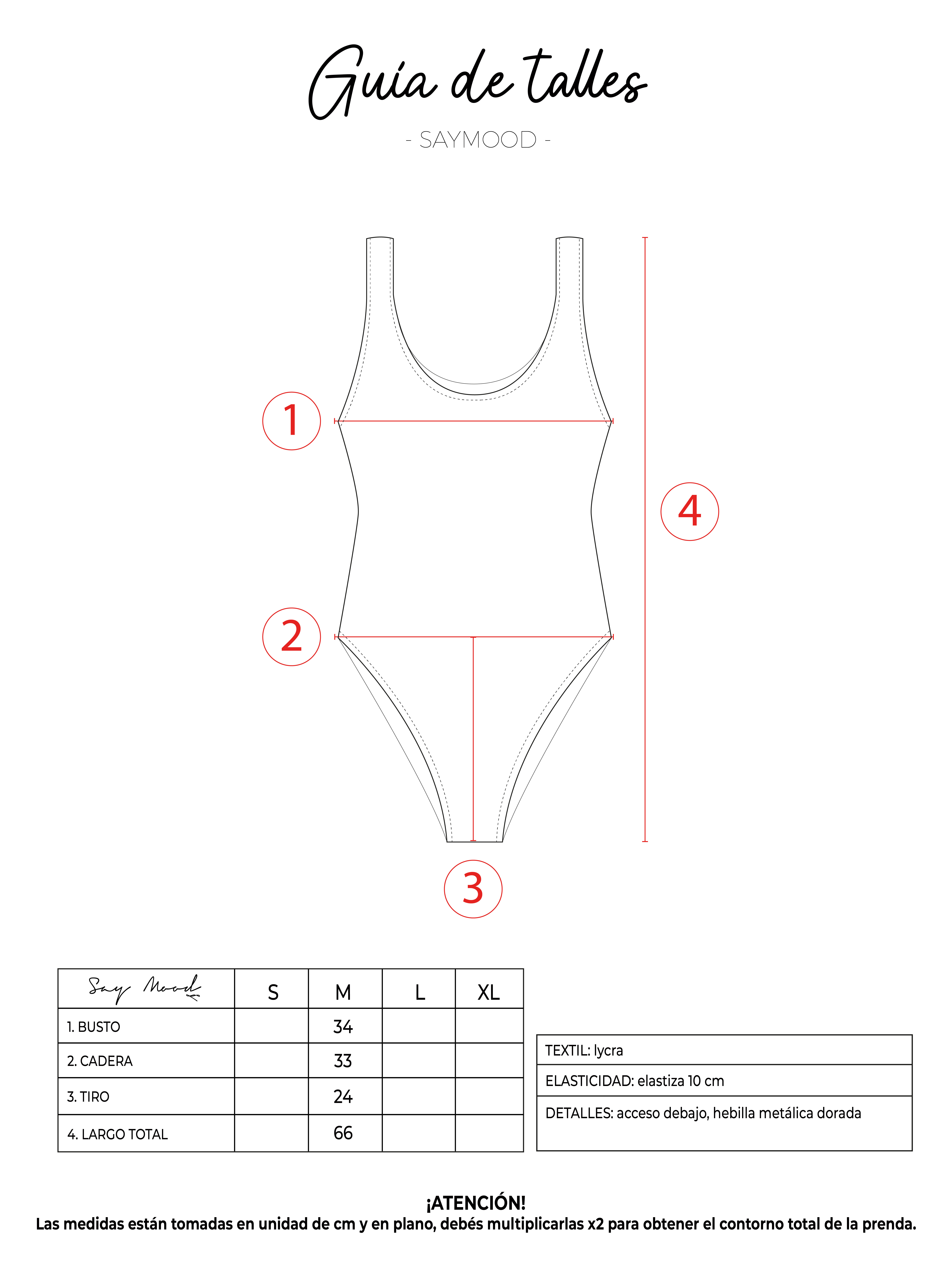 SAYTIPS: chequeá con atención nuestra tabla de talles para encontrar el que mejor vaya con vos. Podés tomar como referencia una prenda similar que tengas para mayor seguridad 😉