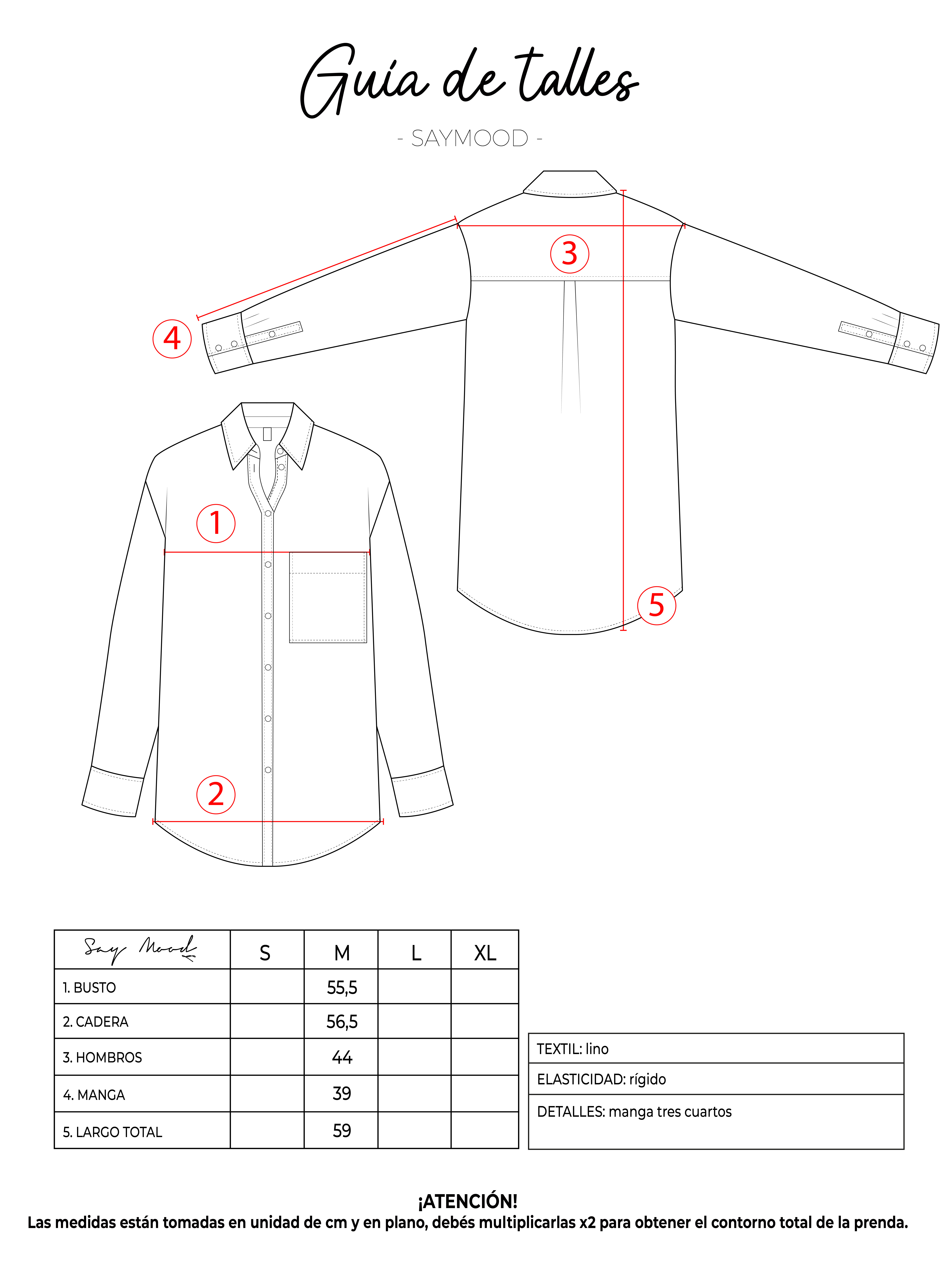 SAYTIPS: chequeá con atención nuestra tabla de talles para encontrar el que mejor vaya con vos. Podés tomar como referencia una prenda similar que tengas para mayor seguridad 😉