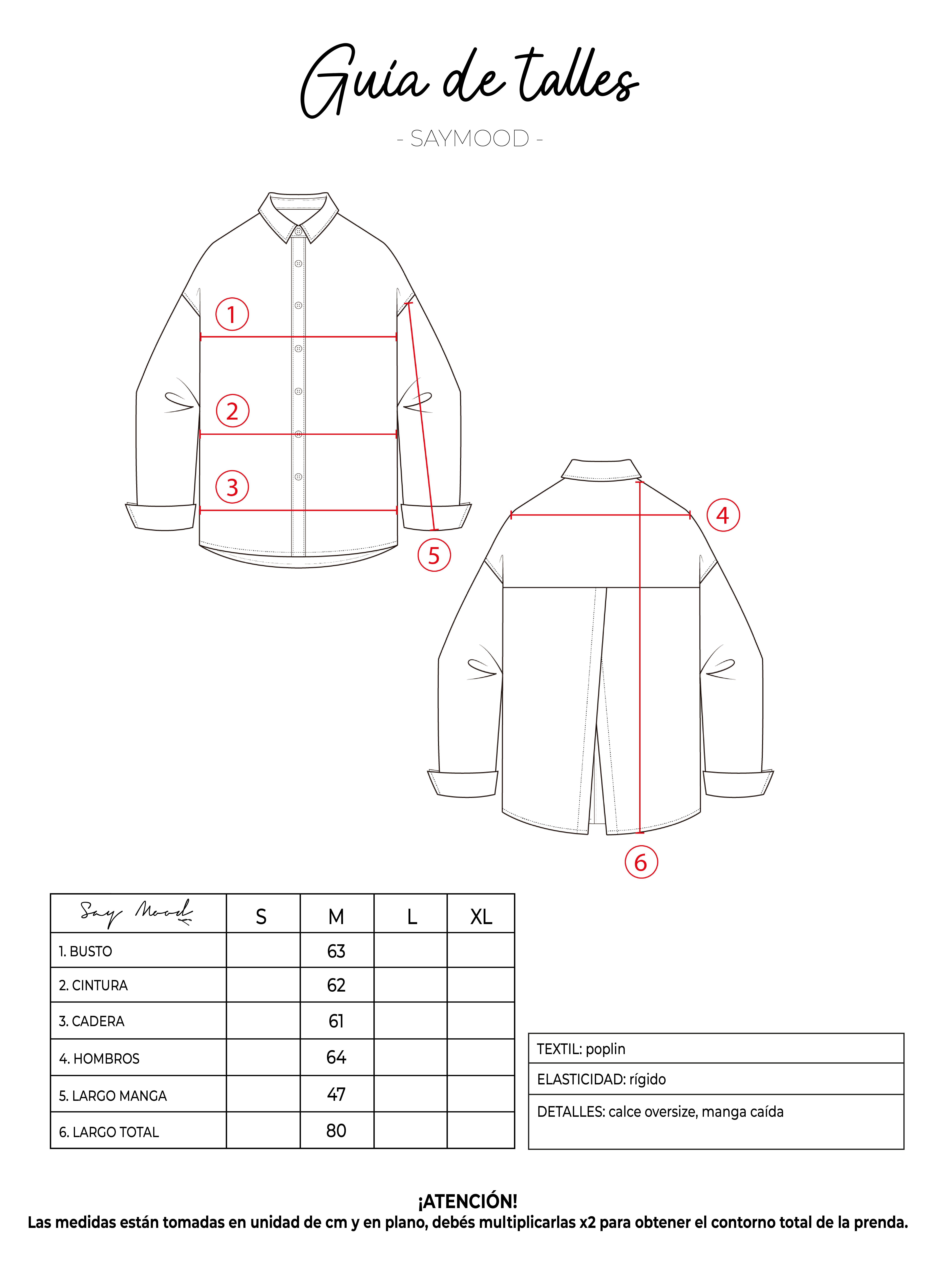 SAYTIPS: chequeá con atención nuestra tabla de talles para encontrar el que mejor vaya con vos. Podés tomar como referencia una prenda similar que tengas para mayor seguridad 😉