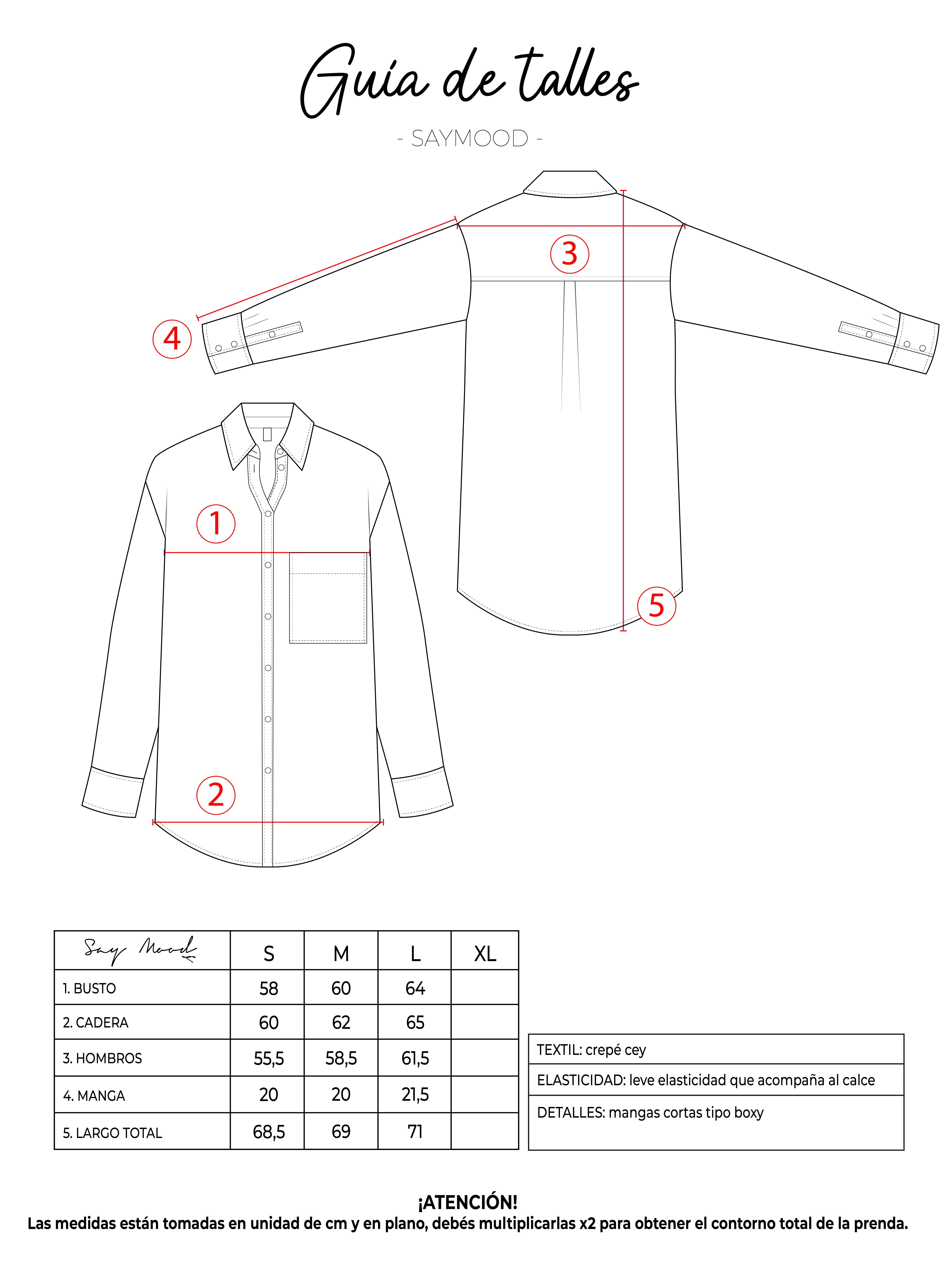 SAYTIPS: chequeá con atención nuestra tabla de talles para encontrar el que mejor vaya con vos. Podés tomar como referencia una prenda similar que tengas para mayor seguridad 😉