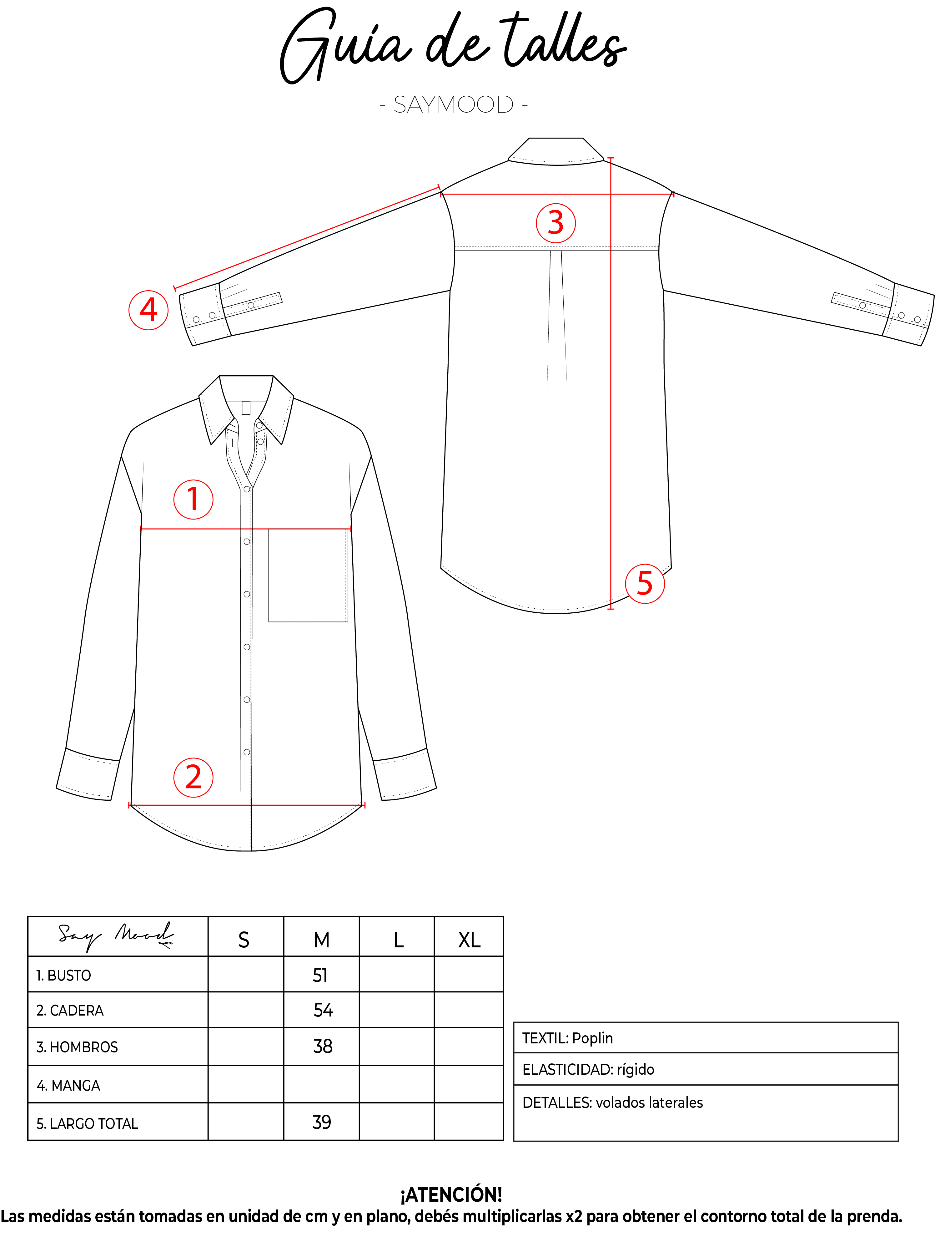 SAYTIPS: chequeá con atención nuestra tabla de talles para encontrar el que mejor vaya con vos. Podés tomar como referencia una prenda similar que tengas para mayor seguridad 😉