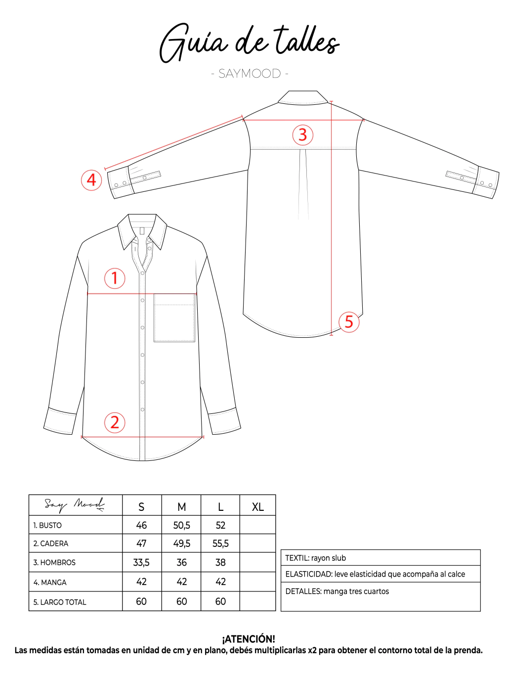 SAYTIPS: chequeá con atención nuestra tabla de talles para encontrar el que mejor vaya con vos. Podés tomar como referencia una prenda similar que tengas para mayor seguridad 😉