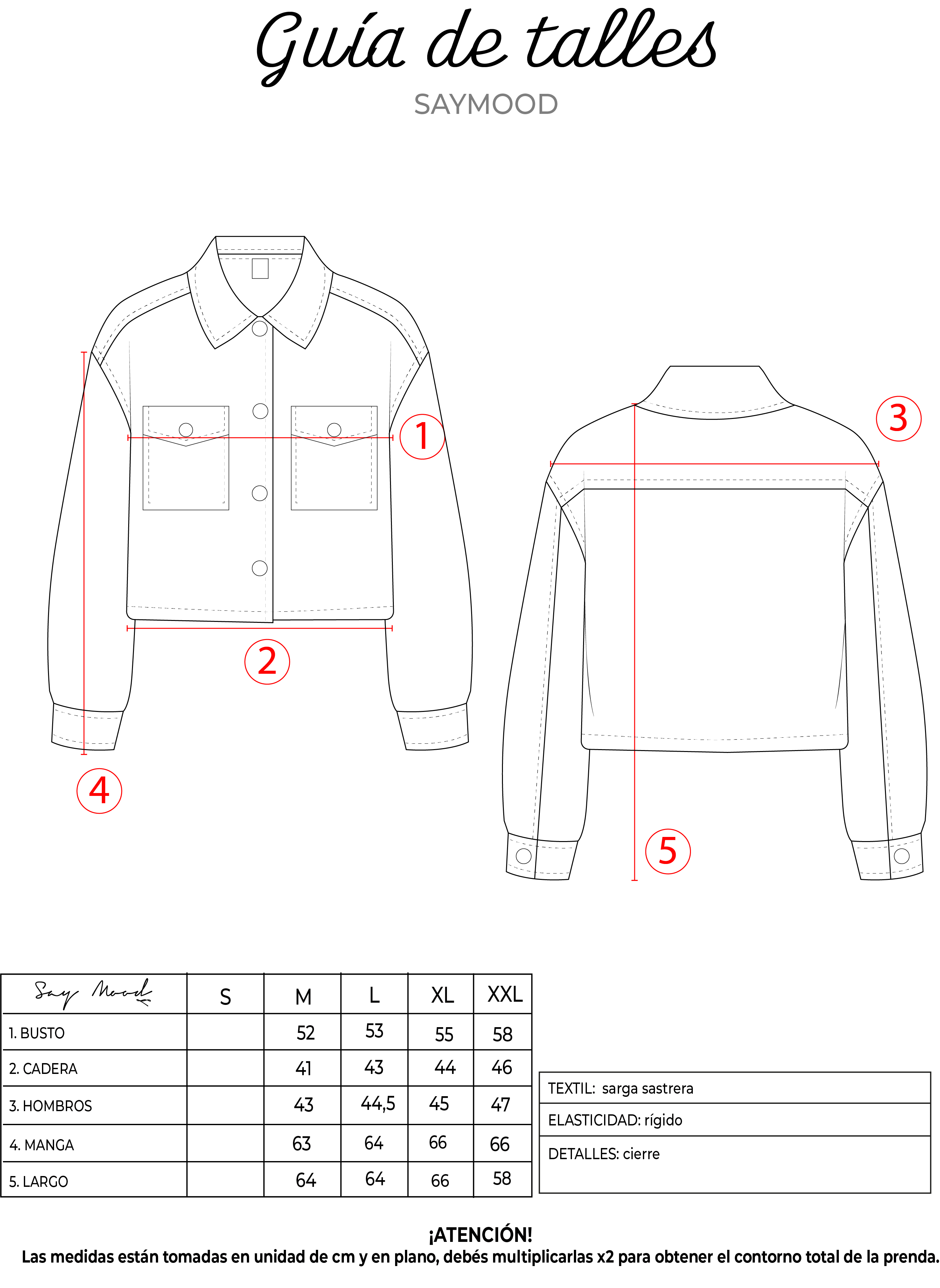 SAYTIPS: chequeá con atención nuestra tabla de talles para encontrar el que mejor vaya con vos. Podés tomar como referencia una prenda similar que tengas para mayor seguridad 😉