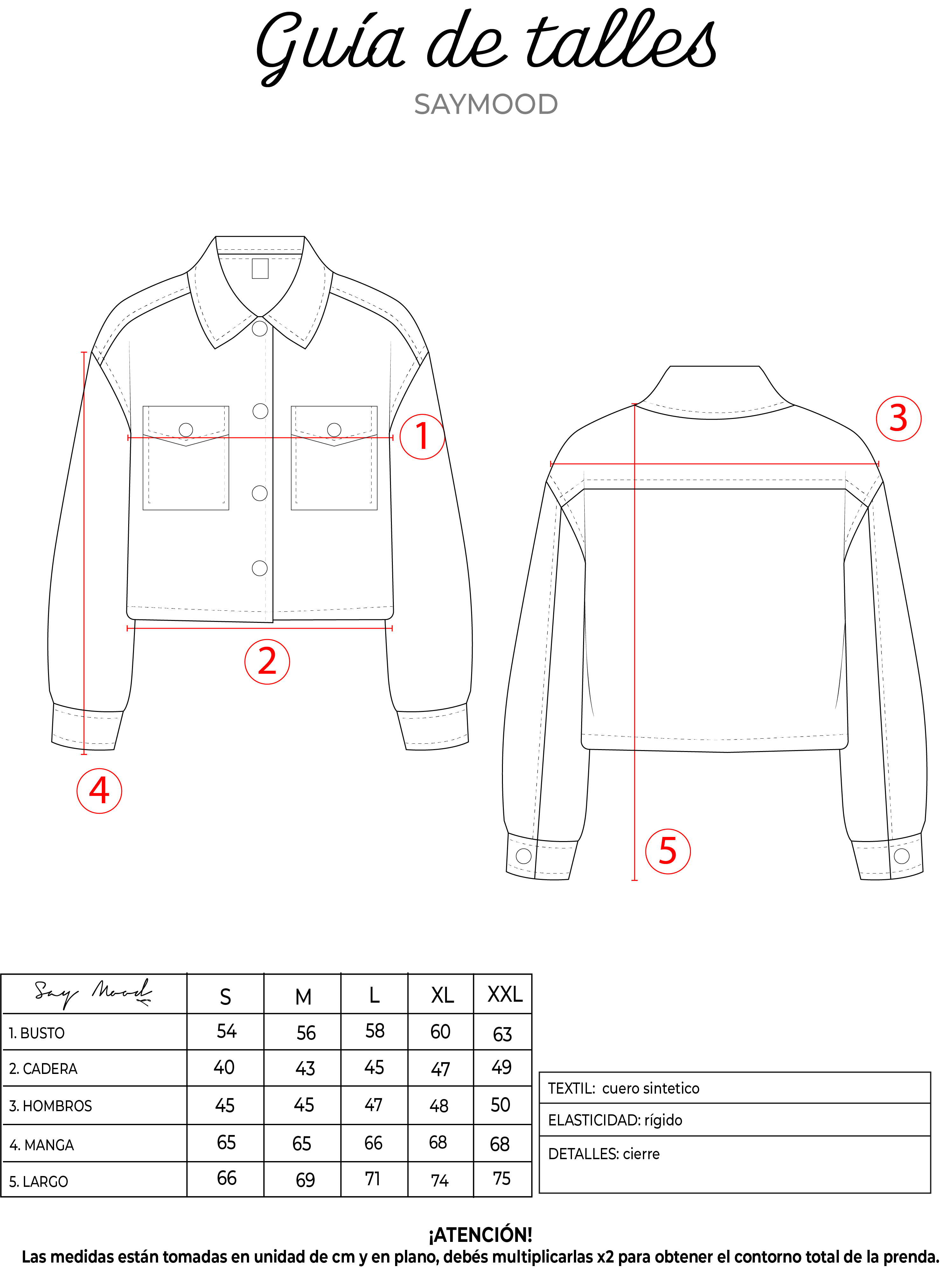 SAYTIPS: chequeá con atención nuestra tabla de talles para encontrar el que mejor vaya con vos. Podés tomar como referencia una prenda similar que tengas para mayor seguridad 😉
