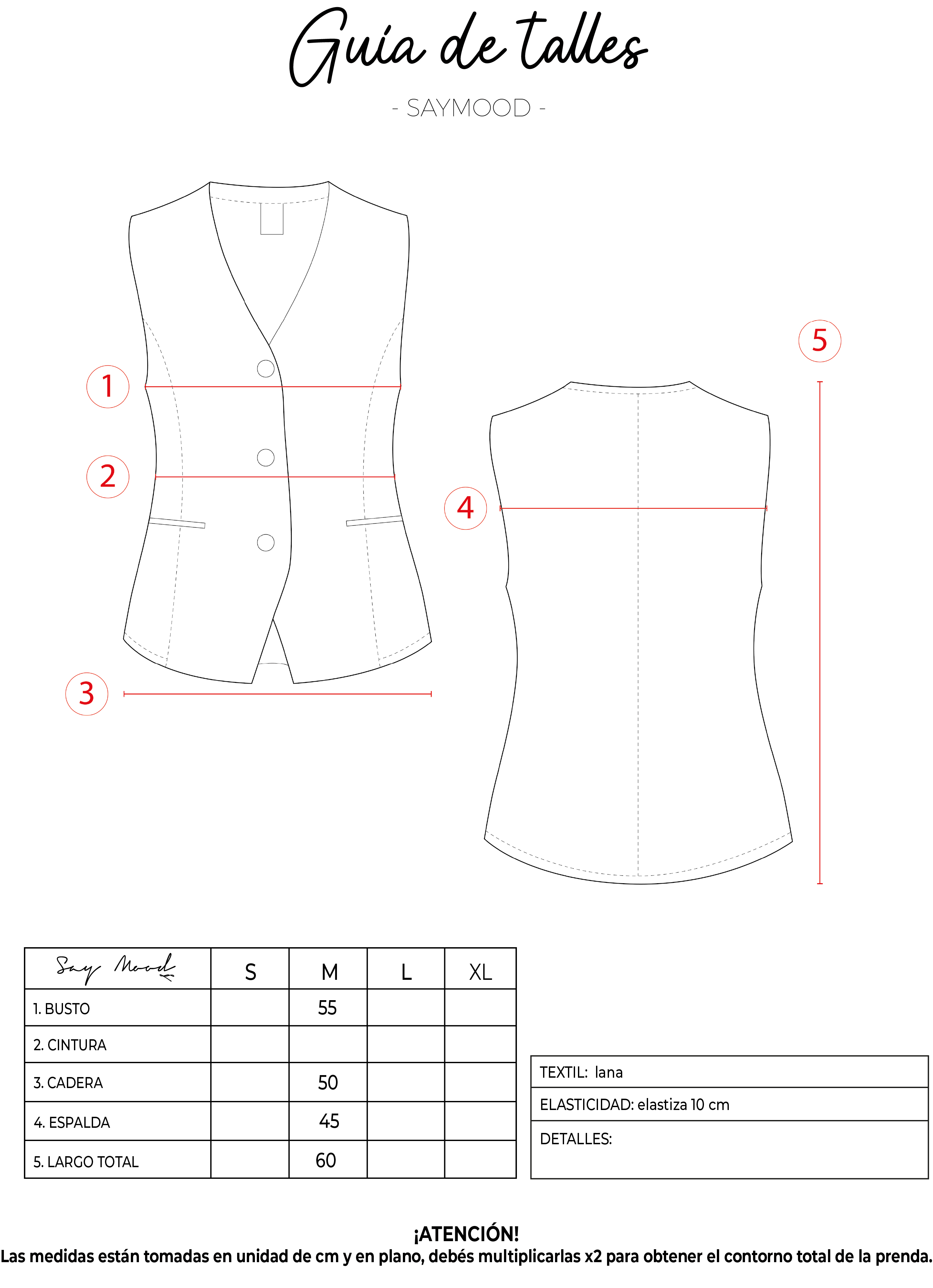 SAYTIPS: chequeá con atención nuestra tabla de talles para encontrar el que mejor vaya con vos. Podés tomar como referencia una prenda similar que tengas para mayor seguridad 😉