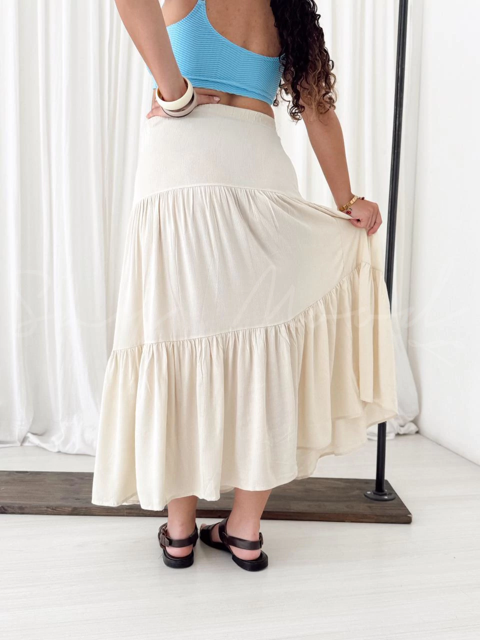 Anticipo de temporada 🤫 para tener los looks más chic y en tendencia este verano, Afra es la falda que necesitas ❤️ confeccionada en rayon slub, liviano y con mucho movimiento. Súper amplia, fresca y sobre todo versátil! le aporta a tus looks un toque bohemio y delicado... podés usarla con una remera estampada, un top, una camisa abierta y hasta de noche🍦 cintura elastizada y maxi largo. Must have del veranito -