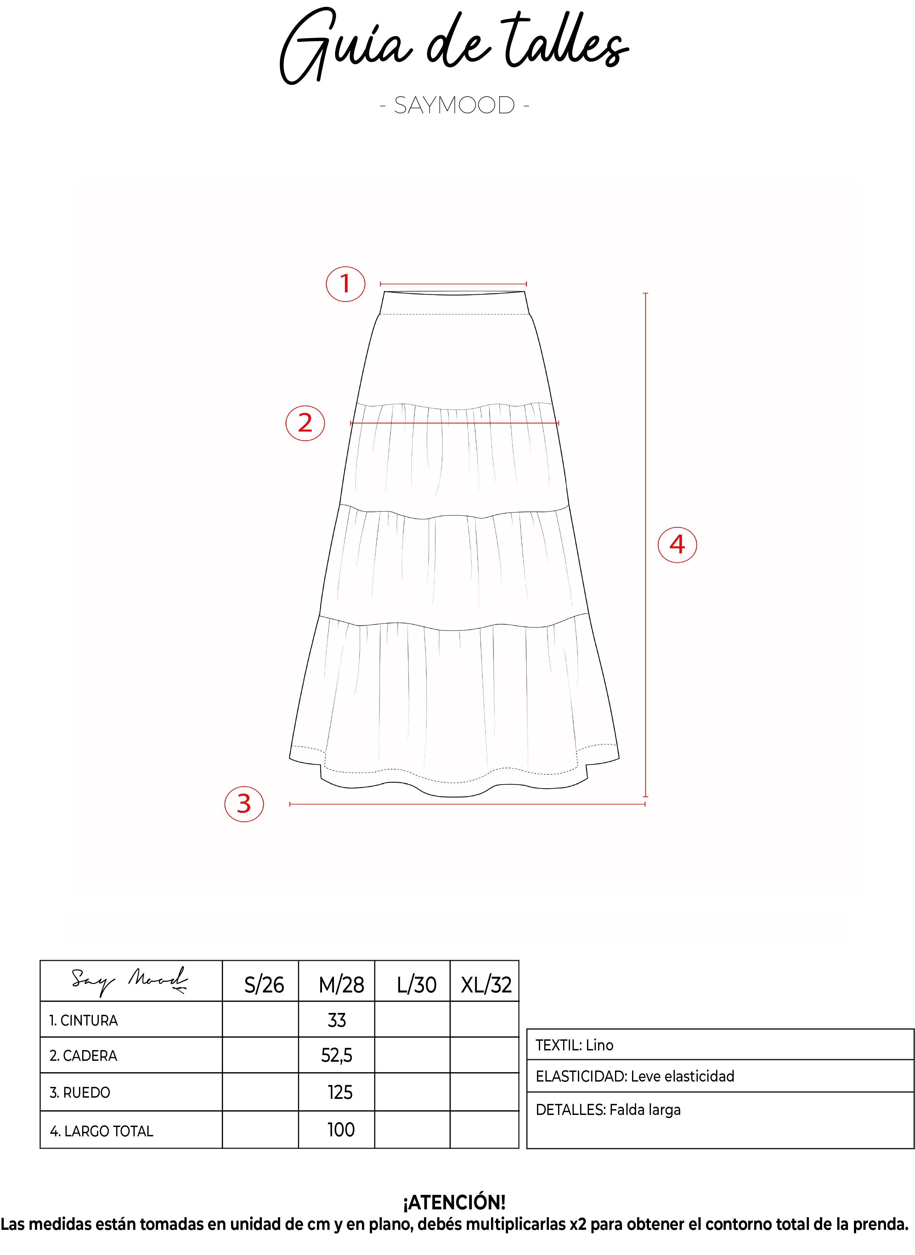 SAYTIPS: chequeá con atención nuestra tabla de talles para encontrar el que mejor vaya con vos. Podés tomar como referencia una prenda similar que tengas para mayor seguridad 😉