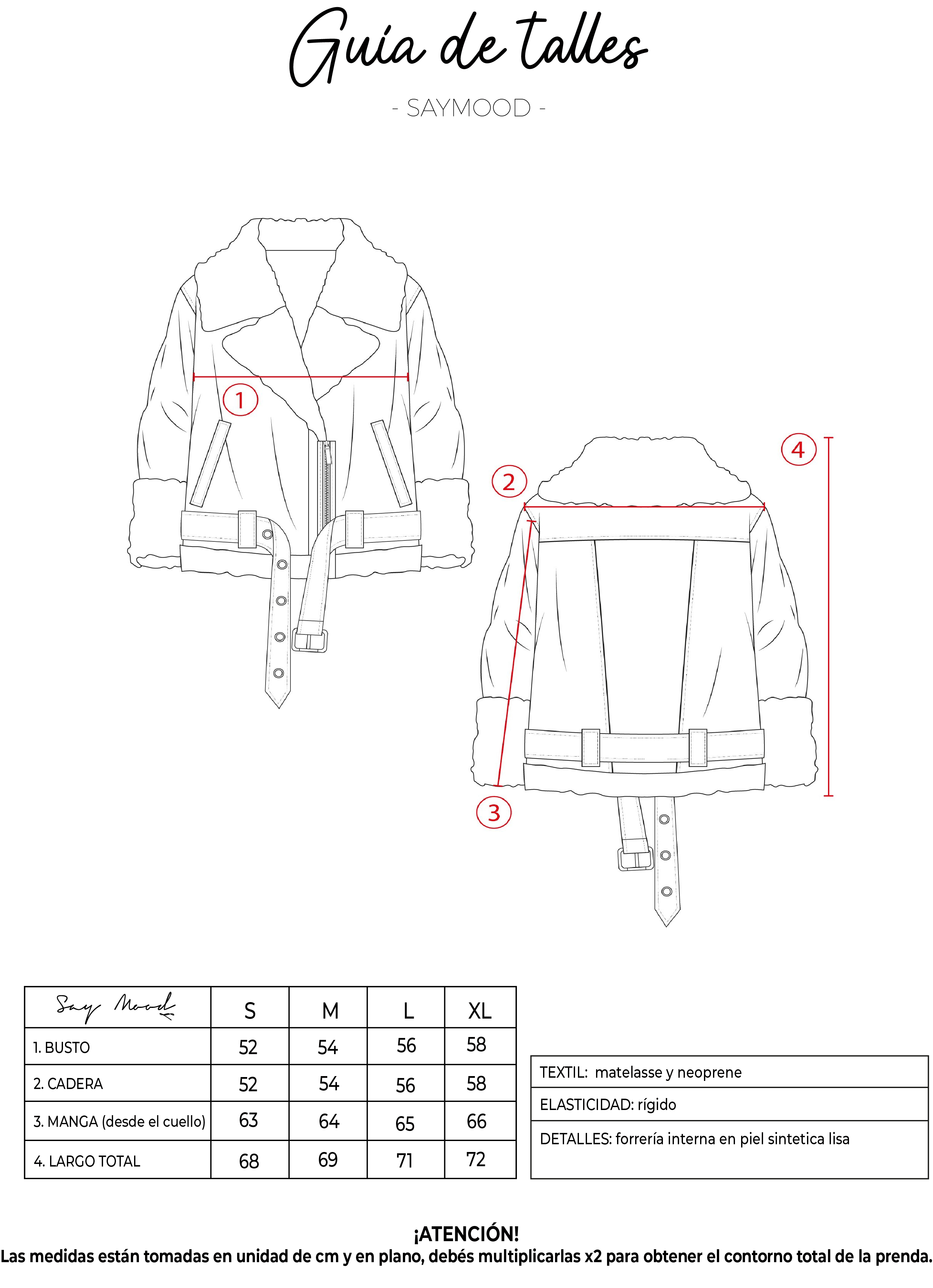 SAYTIPS: chequeá con atención nuestra tabla de talles para encontrar el que mejor vaya con vos. Podés tomar como referencia una prenda similar que tengas para mayor seguridad