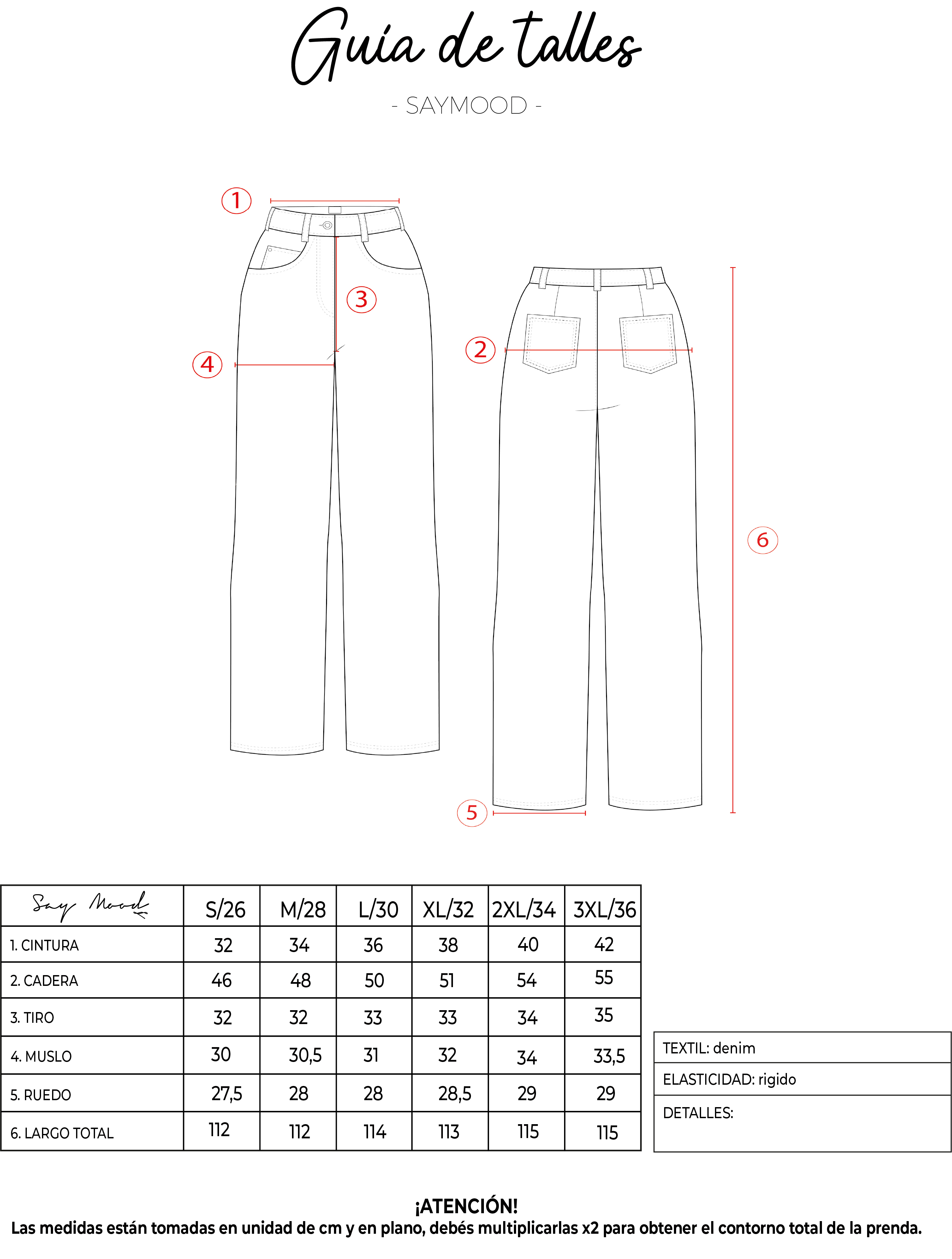 SAYTIPS: chequeá con atención nuestra tabla de talles para encontrar el que mejor vaya con vos. Podés tomar como referencia una prenda similar que tengas para mayor seguridad
