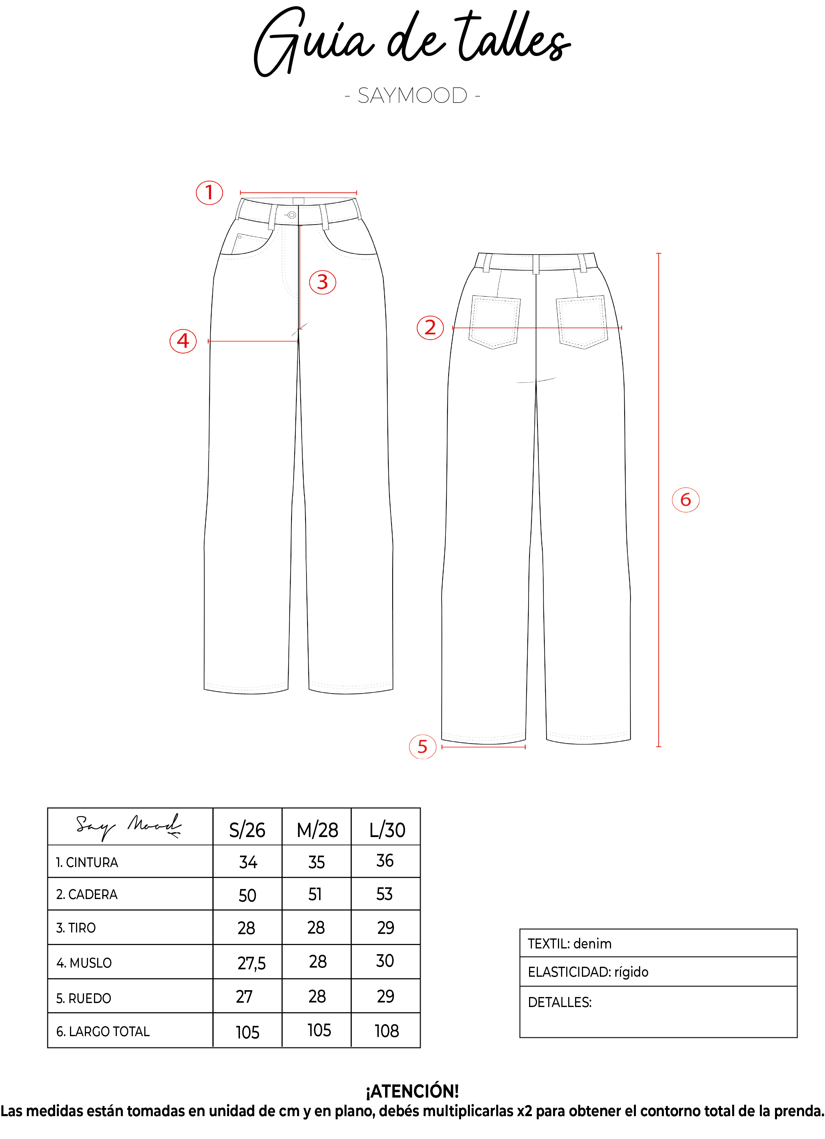 SAYTIPS: chequeá con atención nuestra tabla de talles para encontrar el que mejor vaya con vos. Podés tomar como referencia una prenda similar que tengas para mayor seguridad.