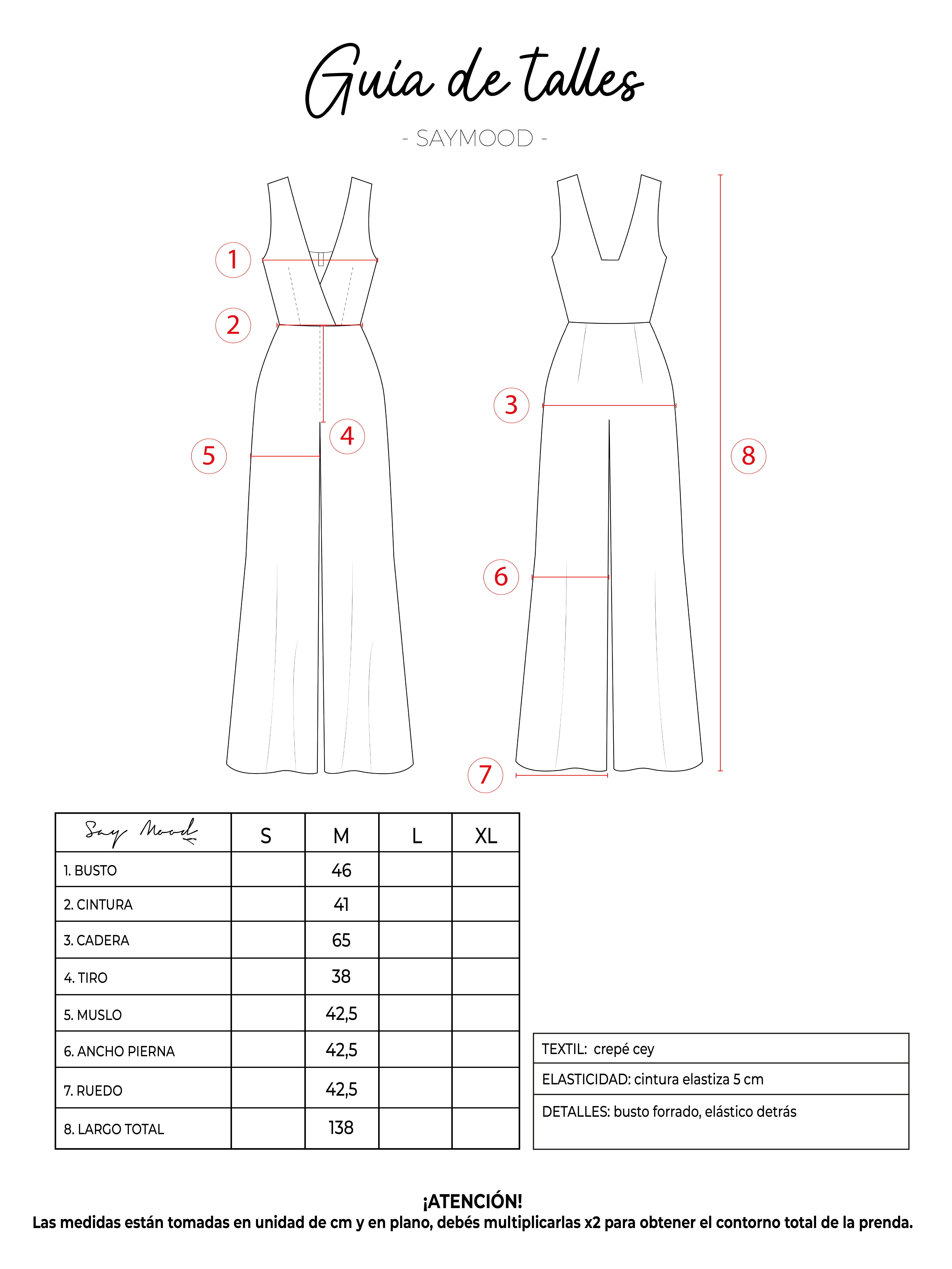 SAYTIPS: chequeá con atención nuestra tabla de talles para encontrar el que mejor vaya con vos. Podés tomar como referencia una prenda similar que tengas para mayor seguridad 😉