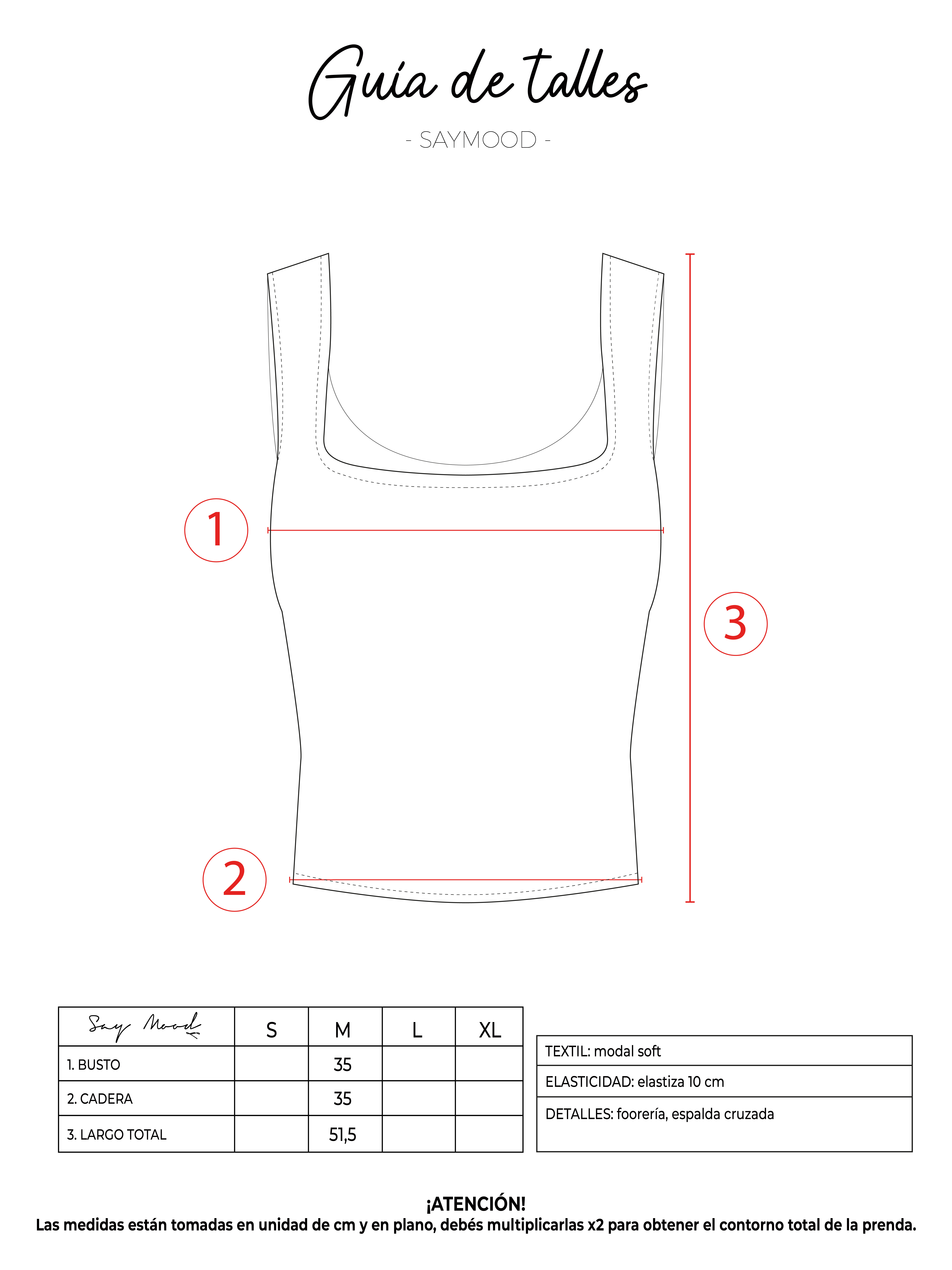 Say Summer 🦩 de estilo clásico y veraniego, Rene resuelve rápido cualquier look en días de calor! La silueta es anatómica, con elasticidad, cuello cerrado y espalda cruzada ✨ Además, forrería. Confeccionada en modal soft de primera calidad, mixea comodidad con un diseño innovador ❤️ esta es una oportunidad única de renovar tus básicos -