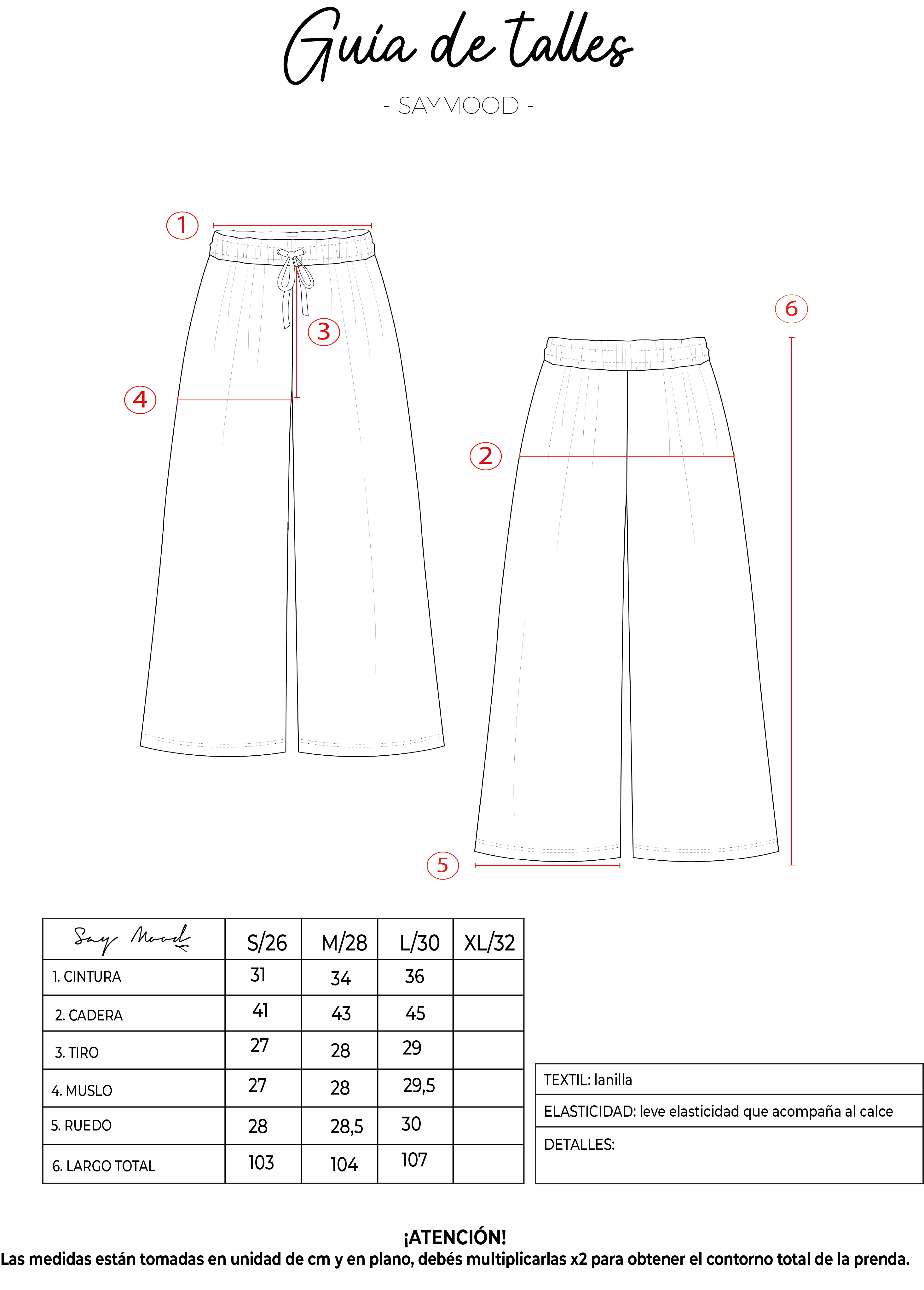 SAYTIPS: chequeá con atención nuestra tabla de talles para encontrar el que mejor vaya con vos. Podés tomar como referencia una prenda similar que tengas para mayor seguridad 😉