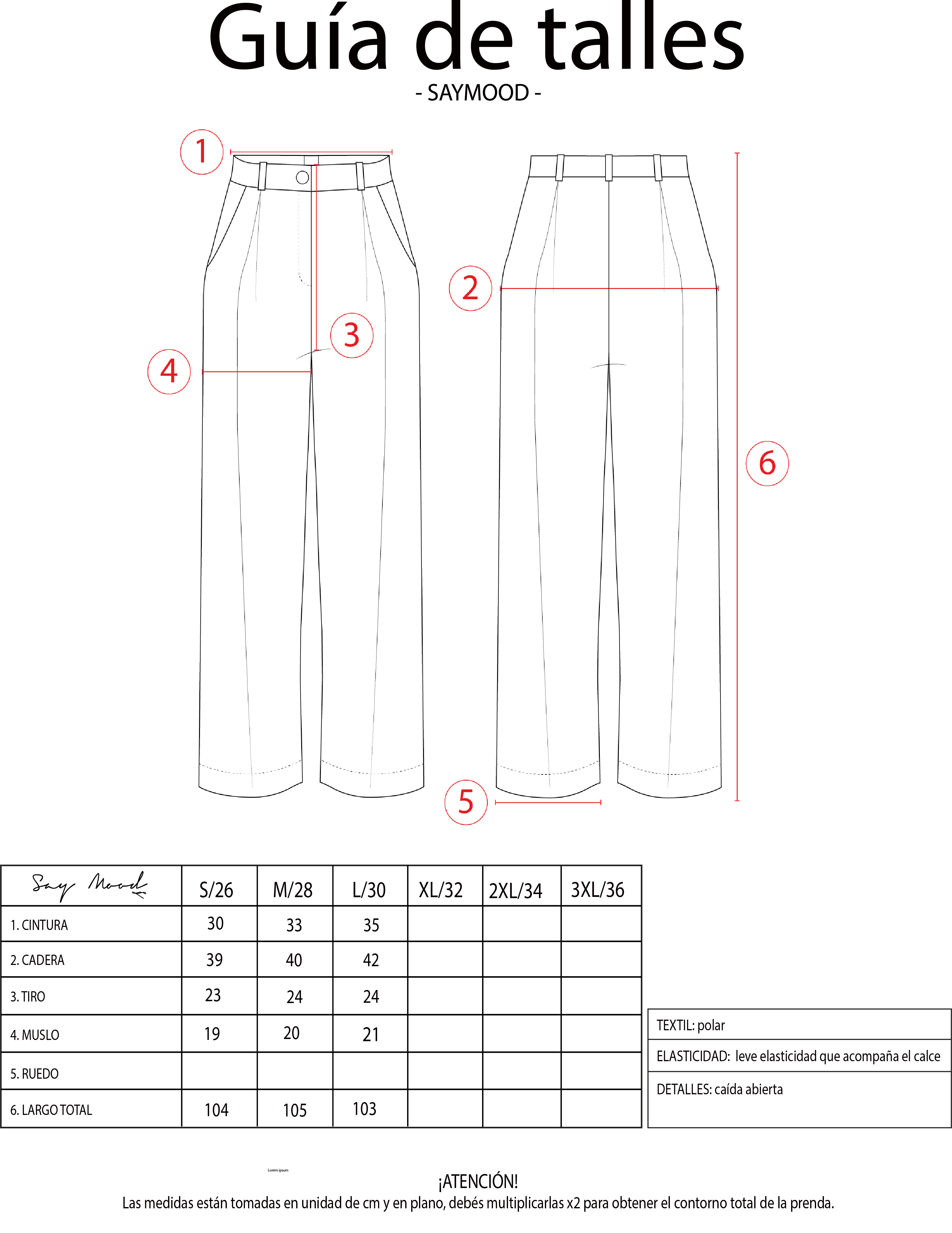 SAYTIPS: chequeá con atención nuestra tabla de talles para encontrar el que mejor vaya con vos. Podés tomar como referencia una prenda similar que tengas para mayor seguridad