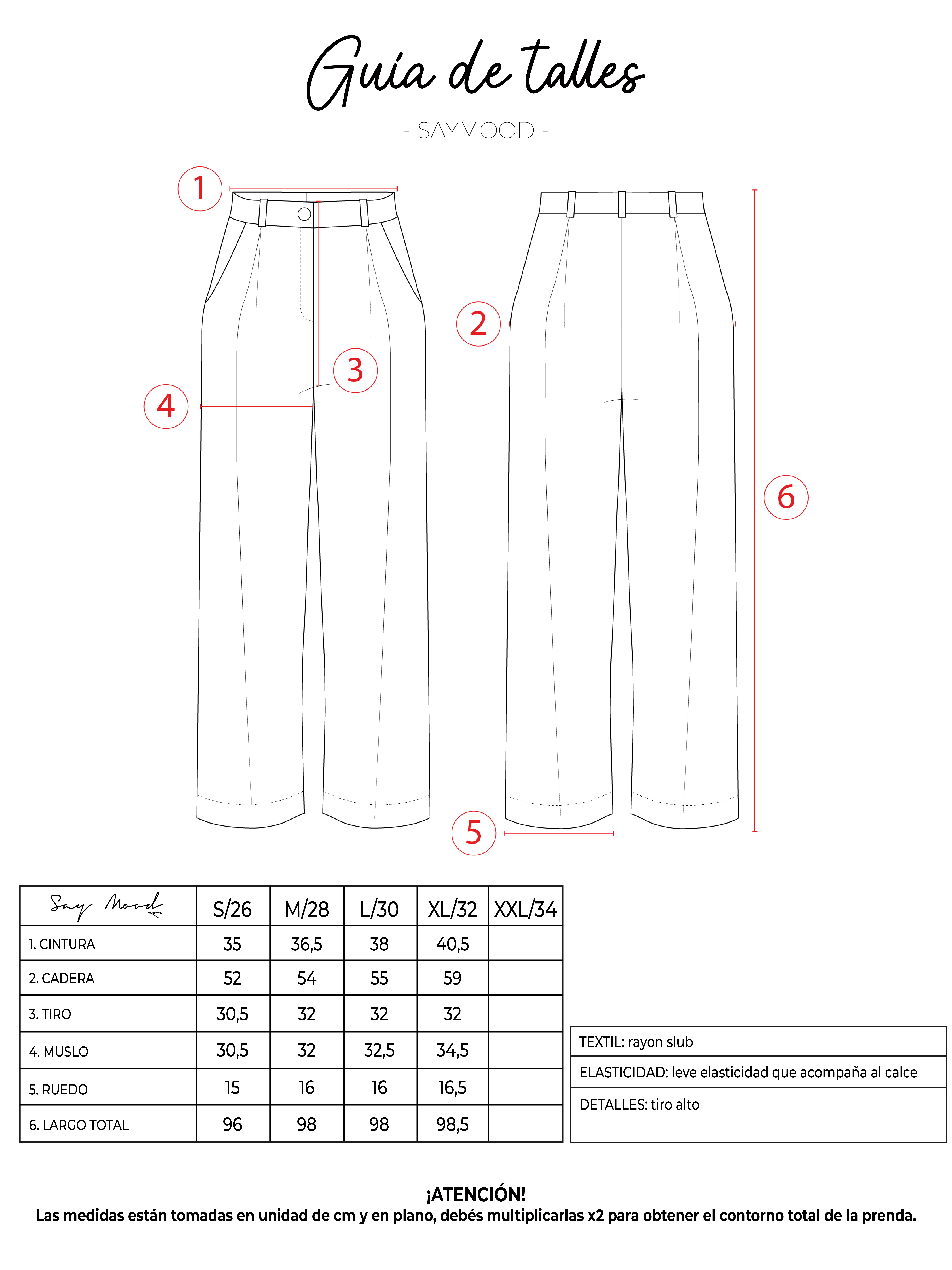 SAYTIPS: chequeá con atención nuestra tabla de talles para encontrar el que mejor vaya con vos. Podés tomar como referencia una prenda similar que tengas para mayor seguridad 😉