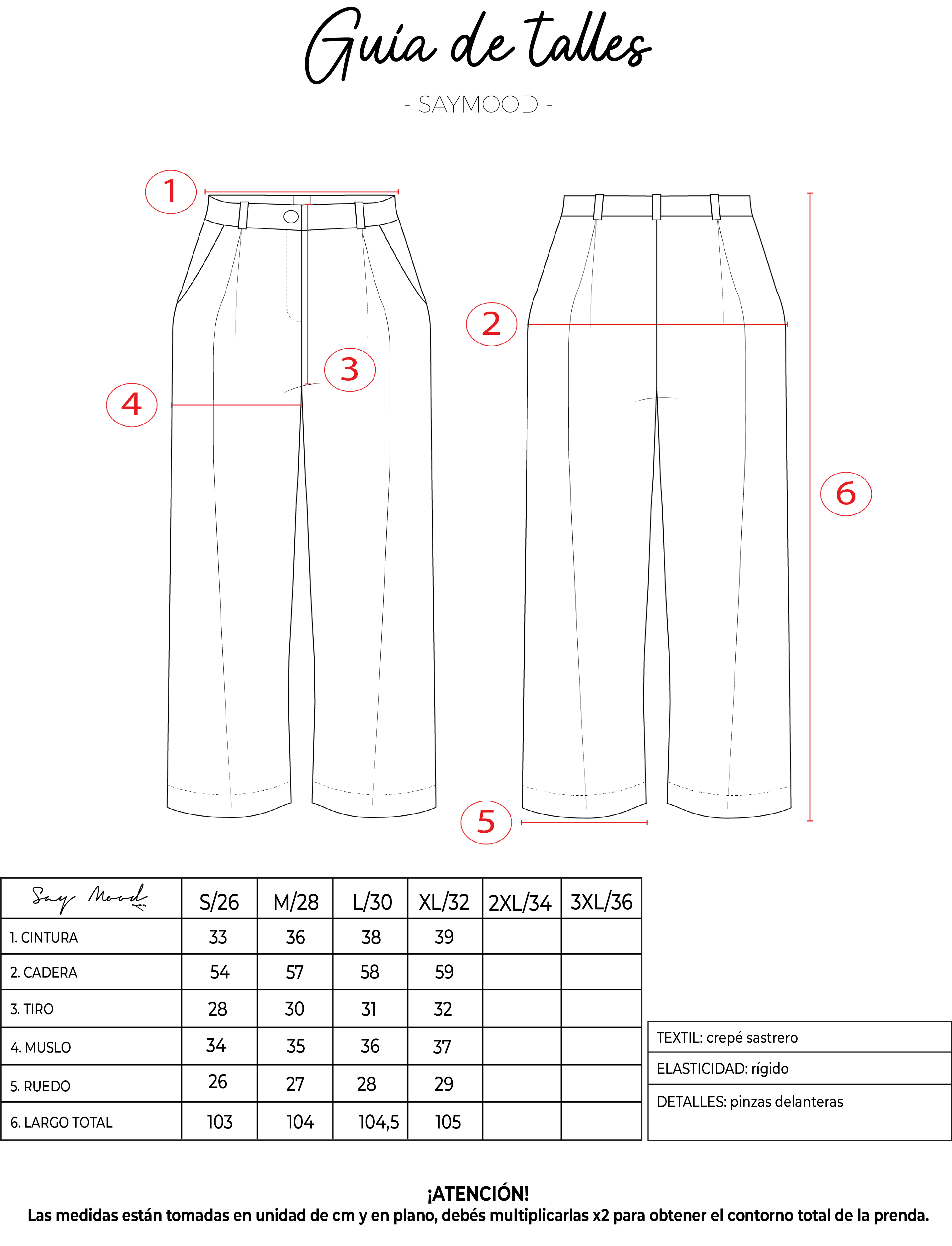 Say Sastrería Marianne es un sastrero moderno y cómodo! se adapta a tu cuerpo y te viste increíble. Con pretina tradicional, tiro medio, bolsillos y caída recta que crea una imagen elegante. Confeccionado en crepé sastrero, liviano y con una hermosa caída.