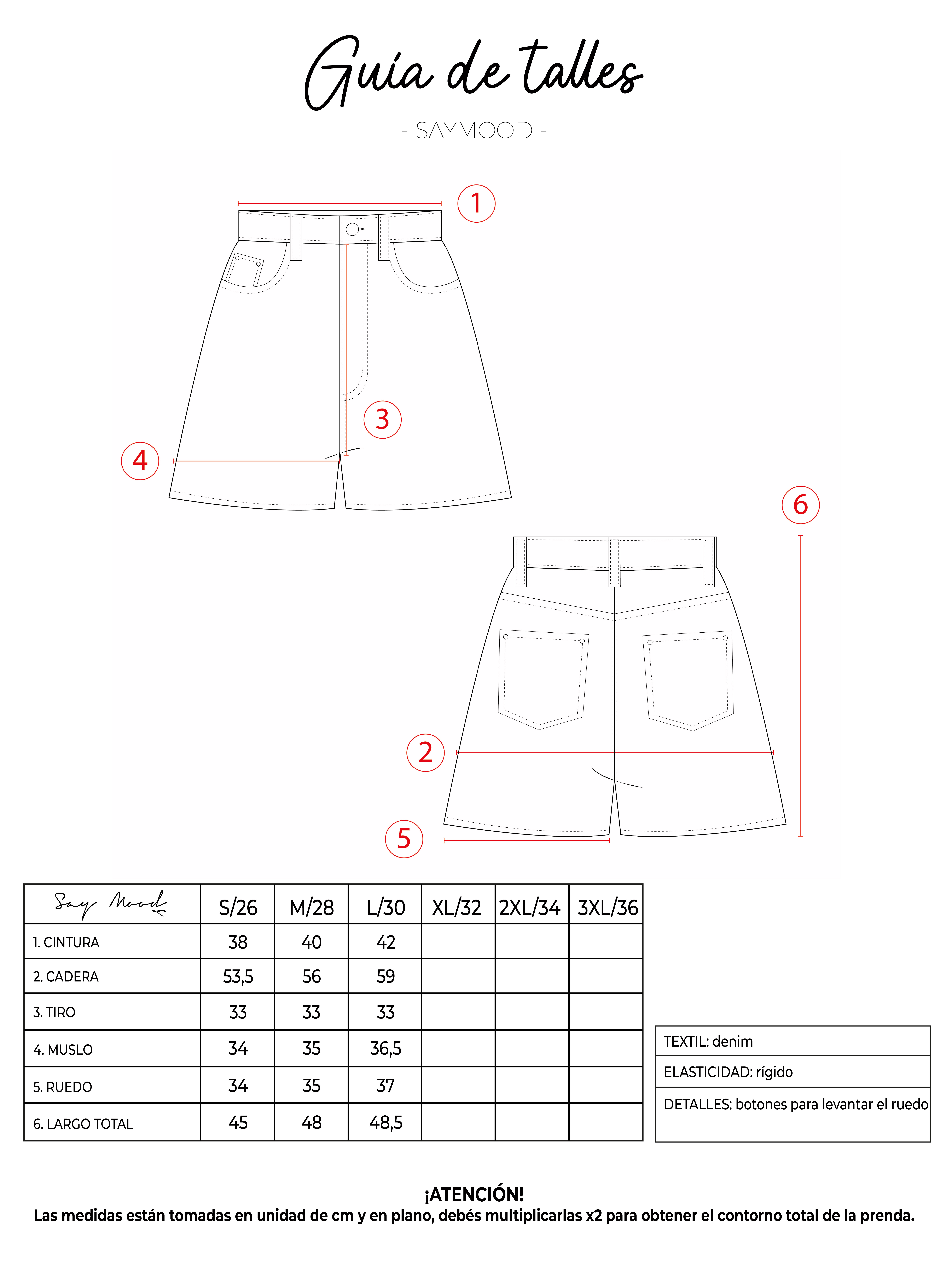 SAYTIPS: chequeá con atención nuestra tabla de talles para encontrar el que mejor vaya con vos. Podés tomar como referencia una prenda similar que tengas para mayor seguridad 😉