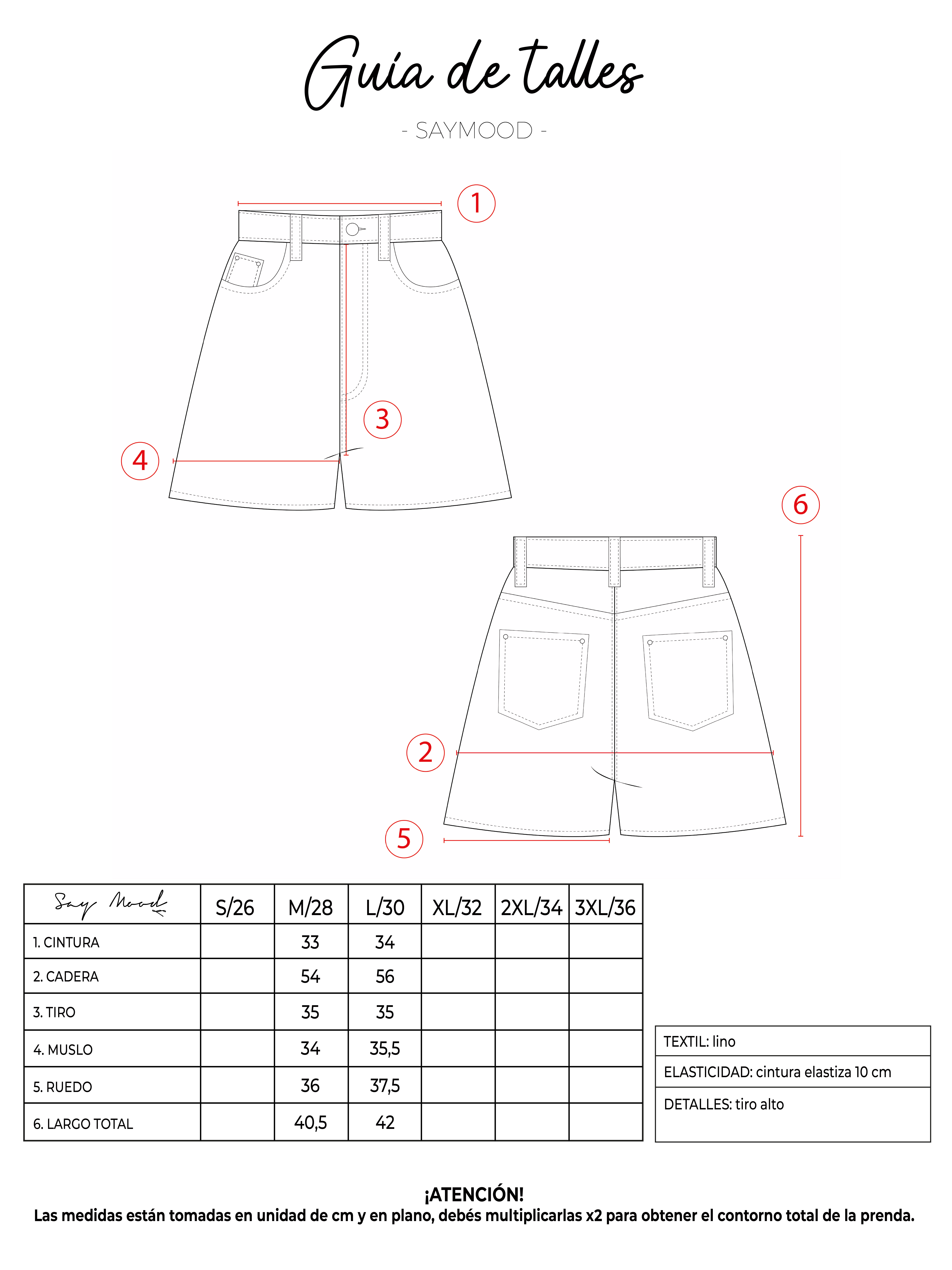 SAYTIPS: chequeá con atención nuestra tabla de talles para encontrar el que mejor vaya con vos. Podés tomar como referencia una prenda similar que tengas para mayor seguridad 😉