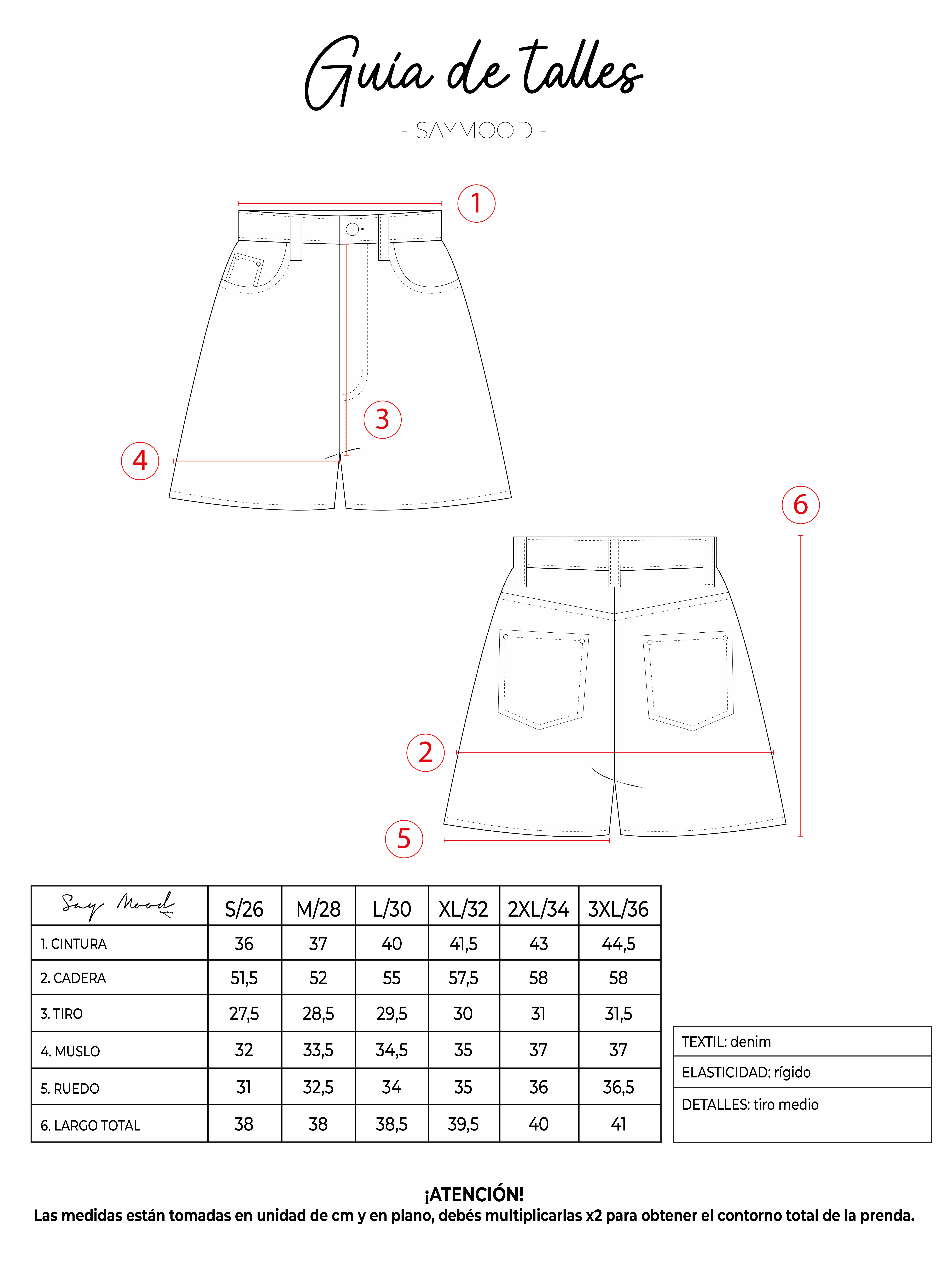 SAYTIPS: chequeá con atención nuestra tabla de talles para encontrar el que mejor vaya con vos. Podés tomar como referencia una prenda similar que tengas para mayor seguridad 😉