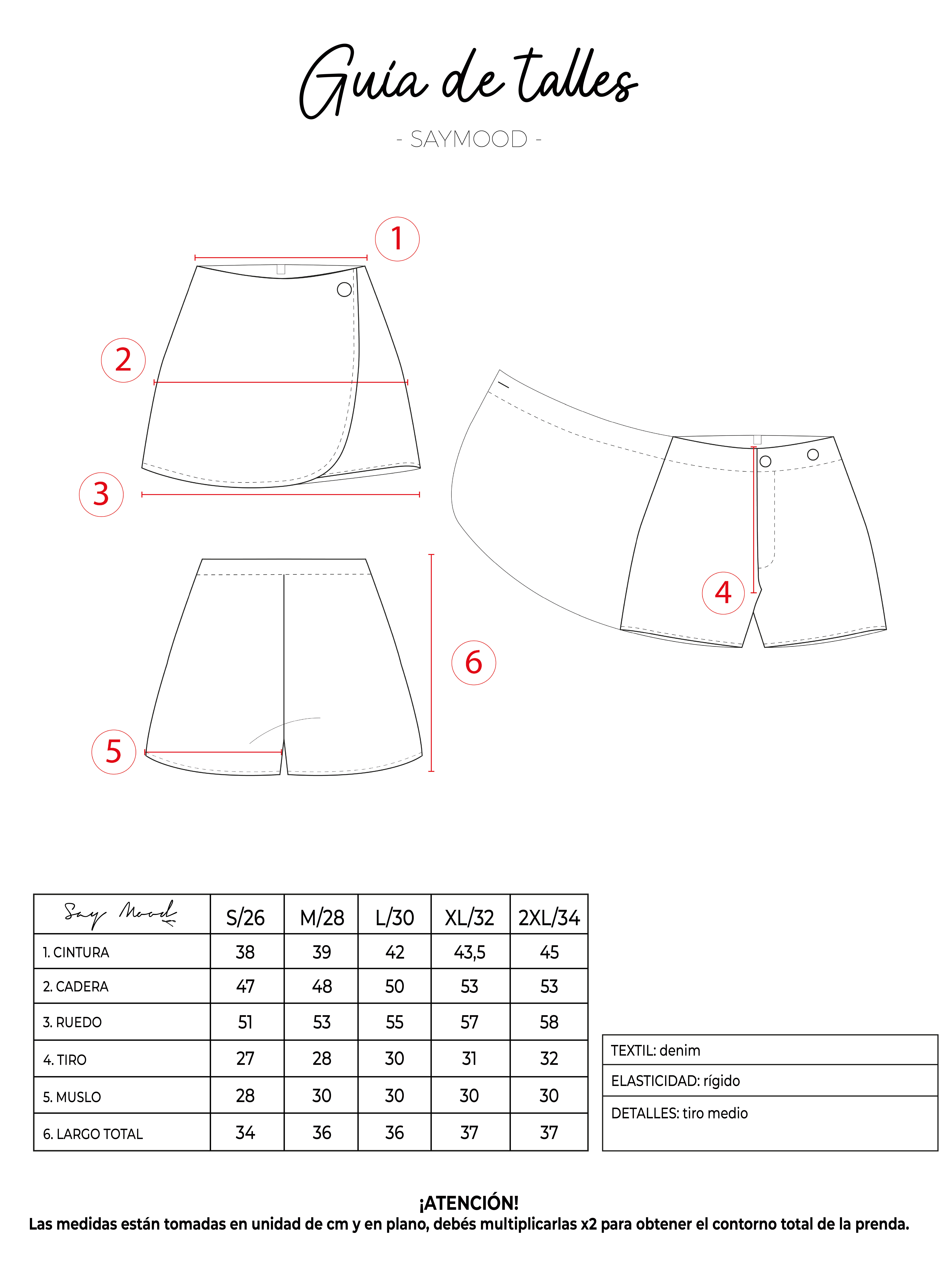 SAYTIPS: chequeá con atención nuestra tabla de talles para encontrar el que mejor vaya con vos. Podés tomar como referencia una prenda similar que tengas para mayor seguridad 😉