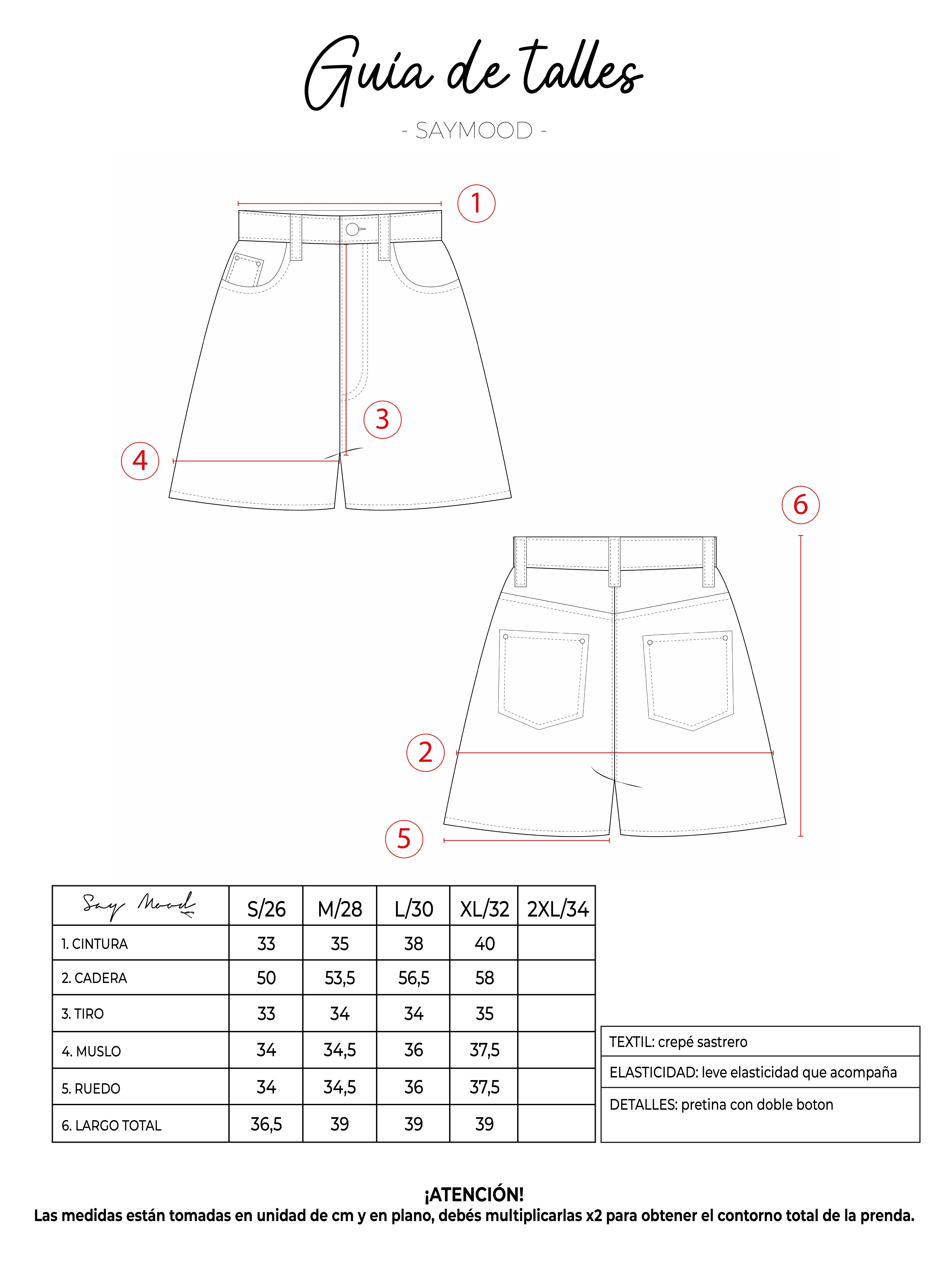 SAYTIPS: chequeá con atención nuestra tabla de talles para encontrar el que mejor vaya con vos. Podés tomar como referencia una prenda similar que tengas para mayor seguridad 😉