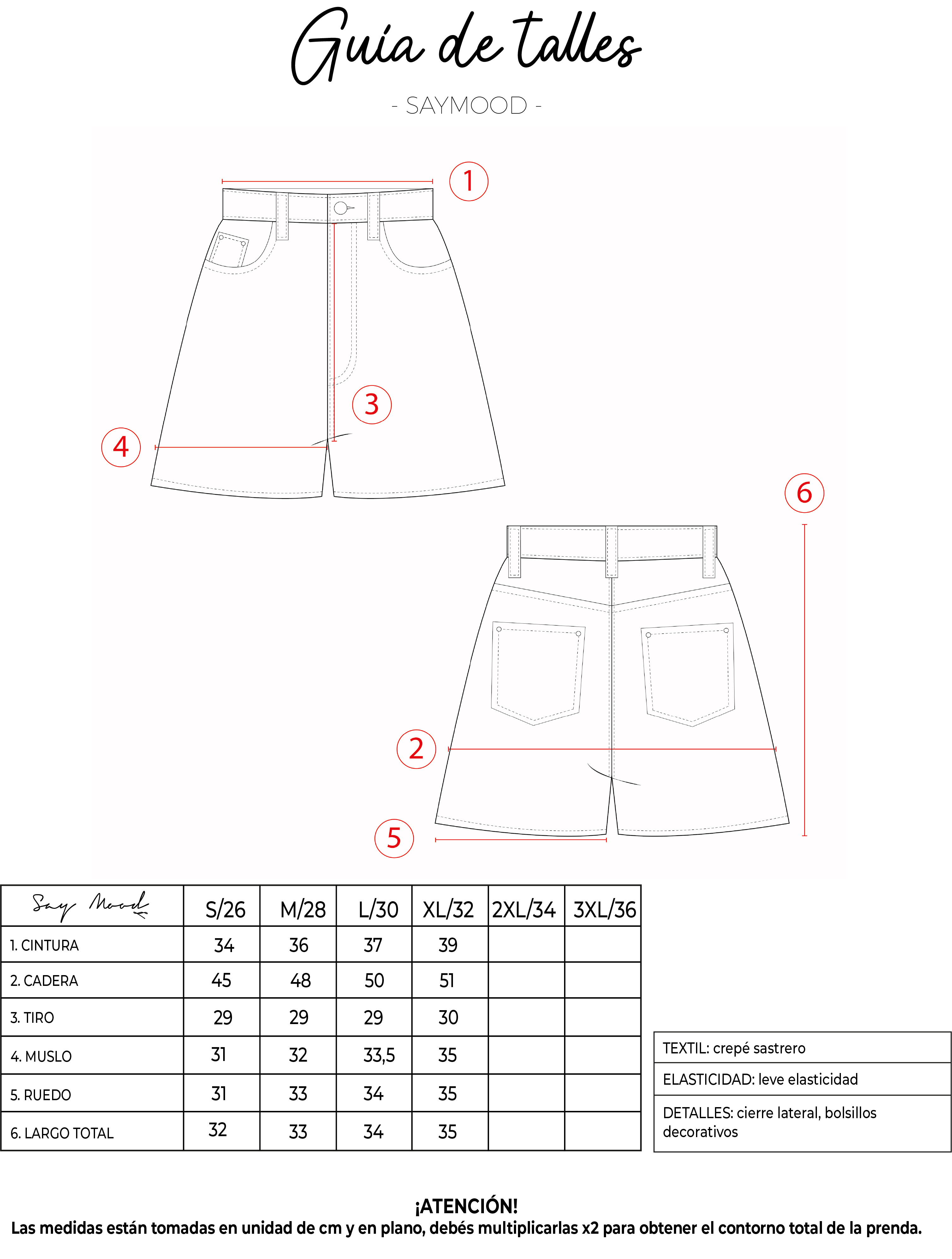 SAYTIPS: chequeá con atención nuestra tabla de talles para encontrar el que mejor vaya con vos. Podés tomar como referencia una prenda similar que tengas para mayor seguridad 😉