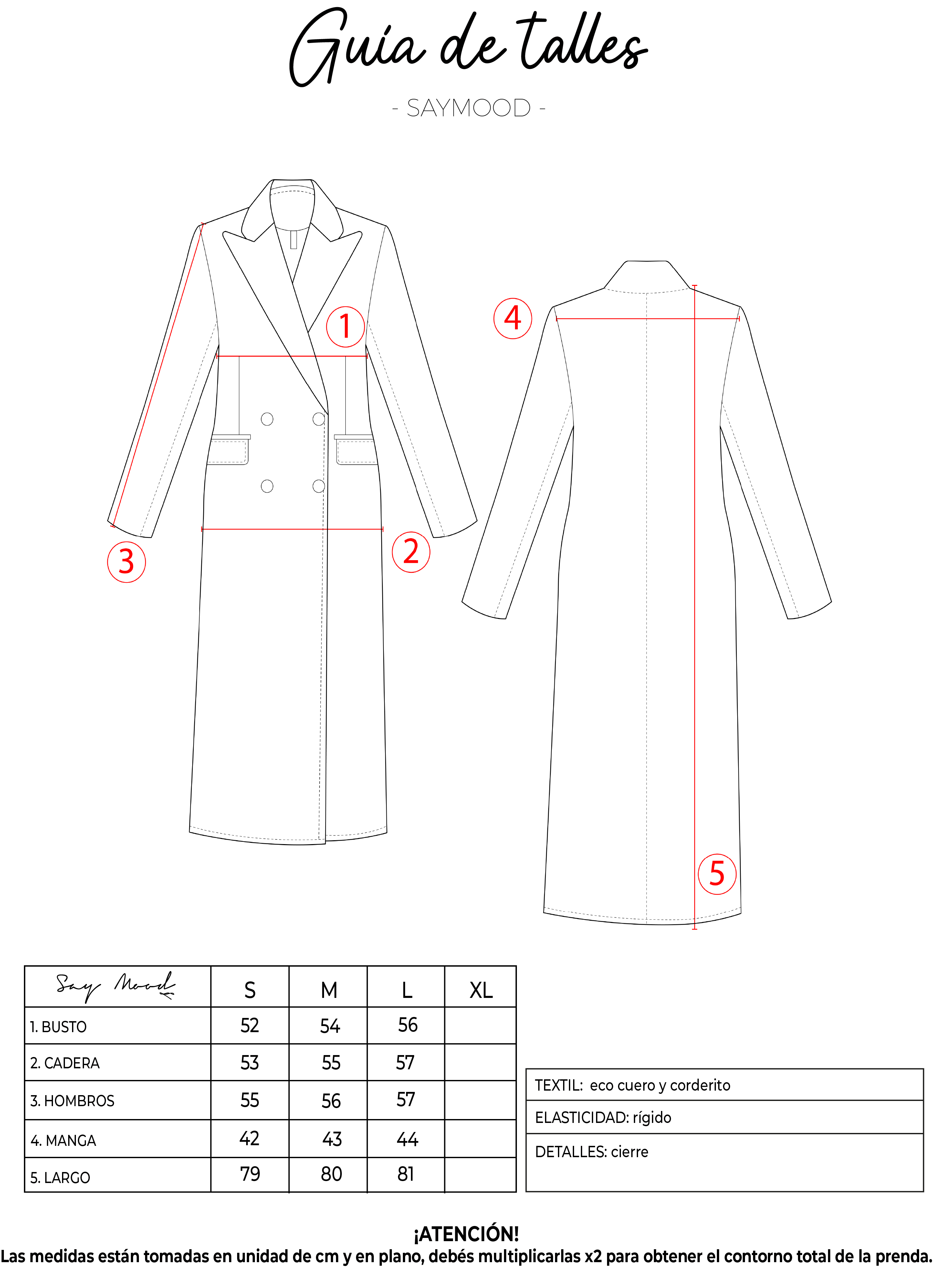 SAYTIPS: chequeá con atención nuestra tabla de talles para encontrar el que mejor vaya con vos. Podés tomar como referencia una prenda similar que tengas para mayor seguridad.