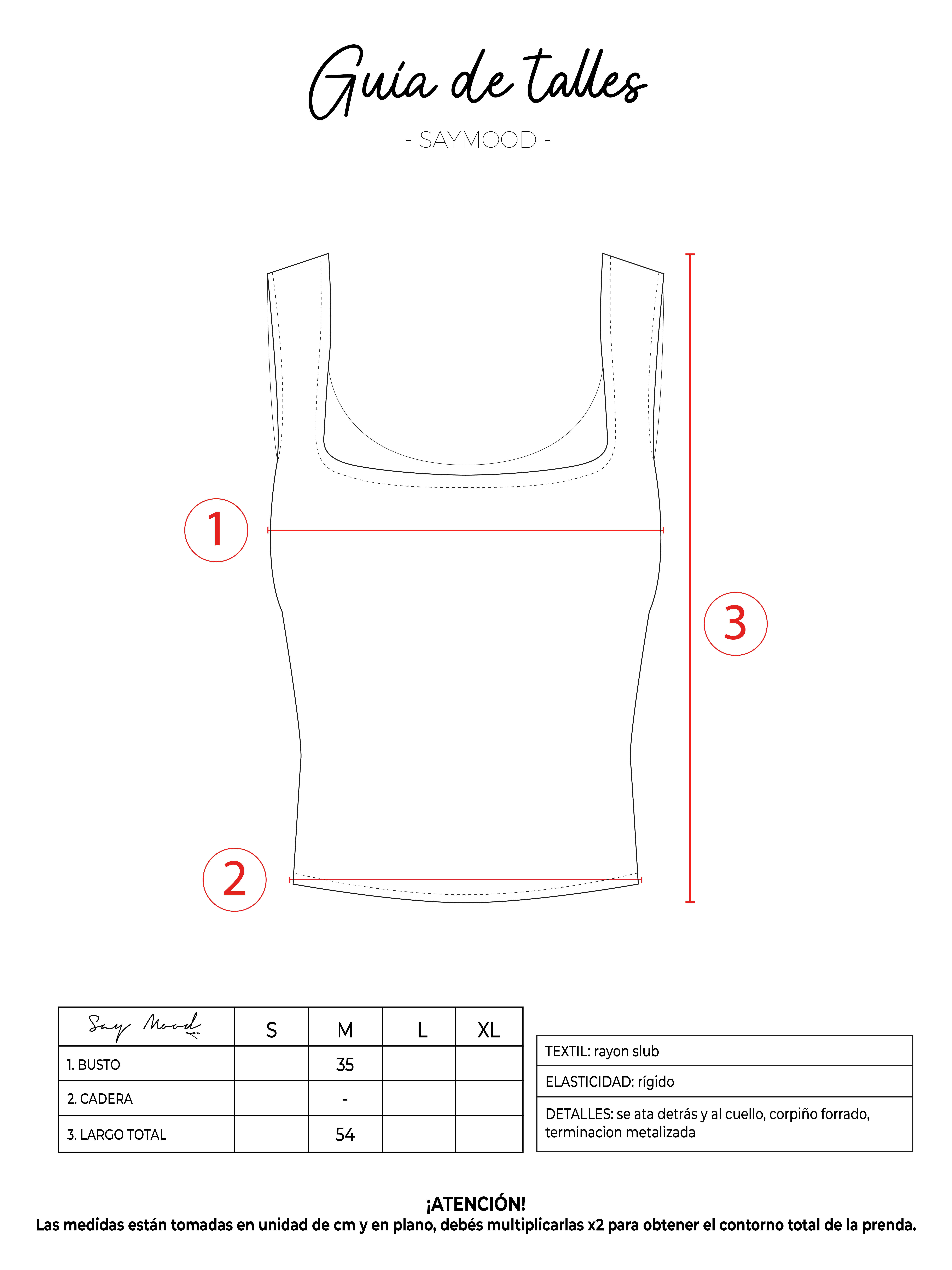 SAYTIPS: chequeá con atención nuestra tabla de talles para encontrar el que mejor vaya con vos. Podés tomar como referencia una prenda similar que tengas para mayor seguridad 😉