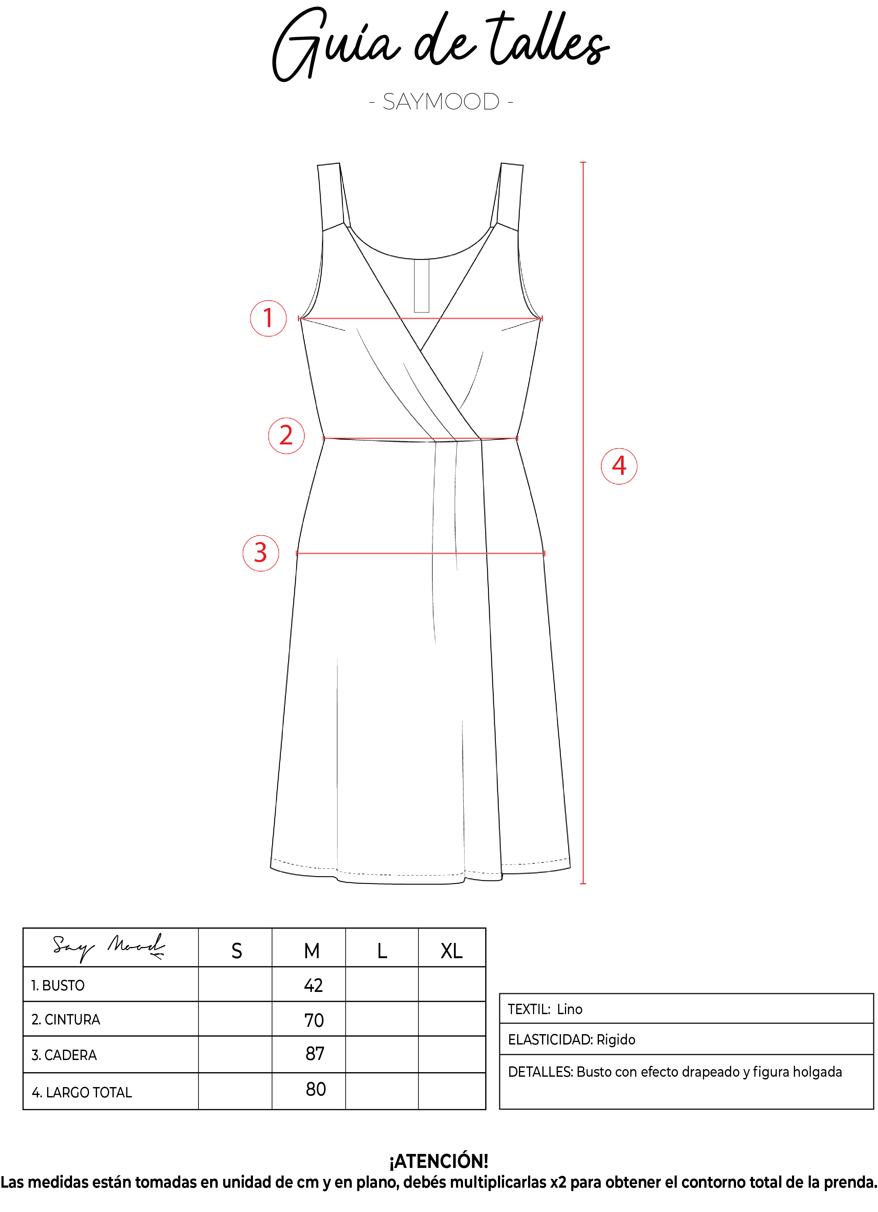 SAYTIPS: chequeá con atención nuestra tabla de talles para encontrar el que mejor vaya con vos. Podés tomar como referencia una prenda similar que tengas para mayor seguridad 😉