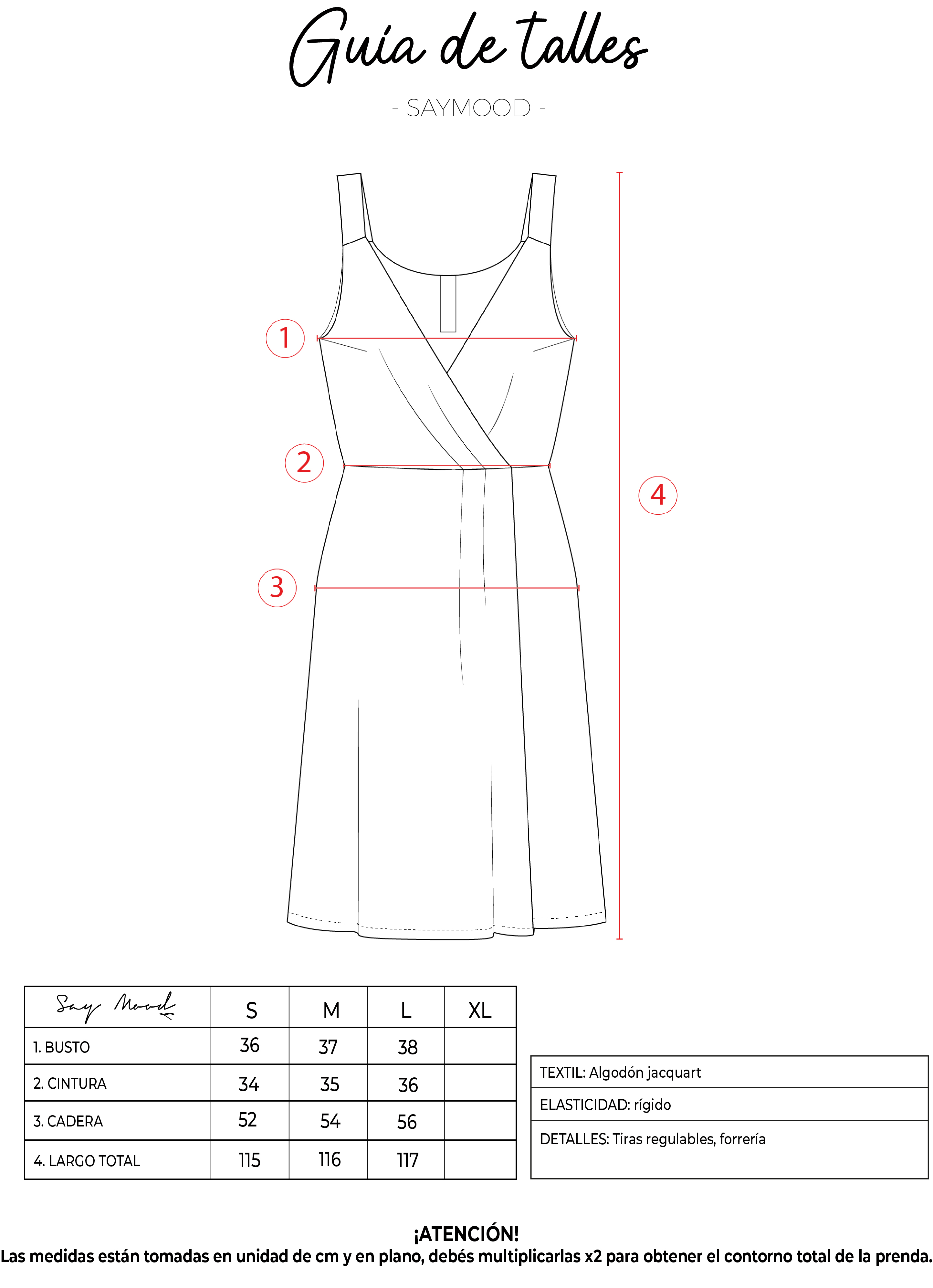 SAYTIPS: chequeá con atención nuestra tabla de talles para encontrar el que mejor vaya con vos. Podés tomar como referencia una prenda similar que tengas para mayor seguridad 😉