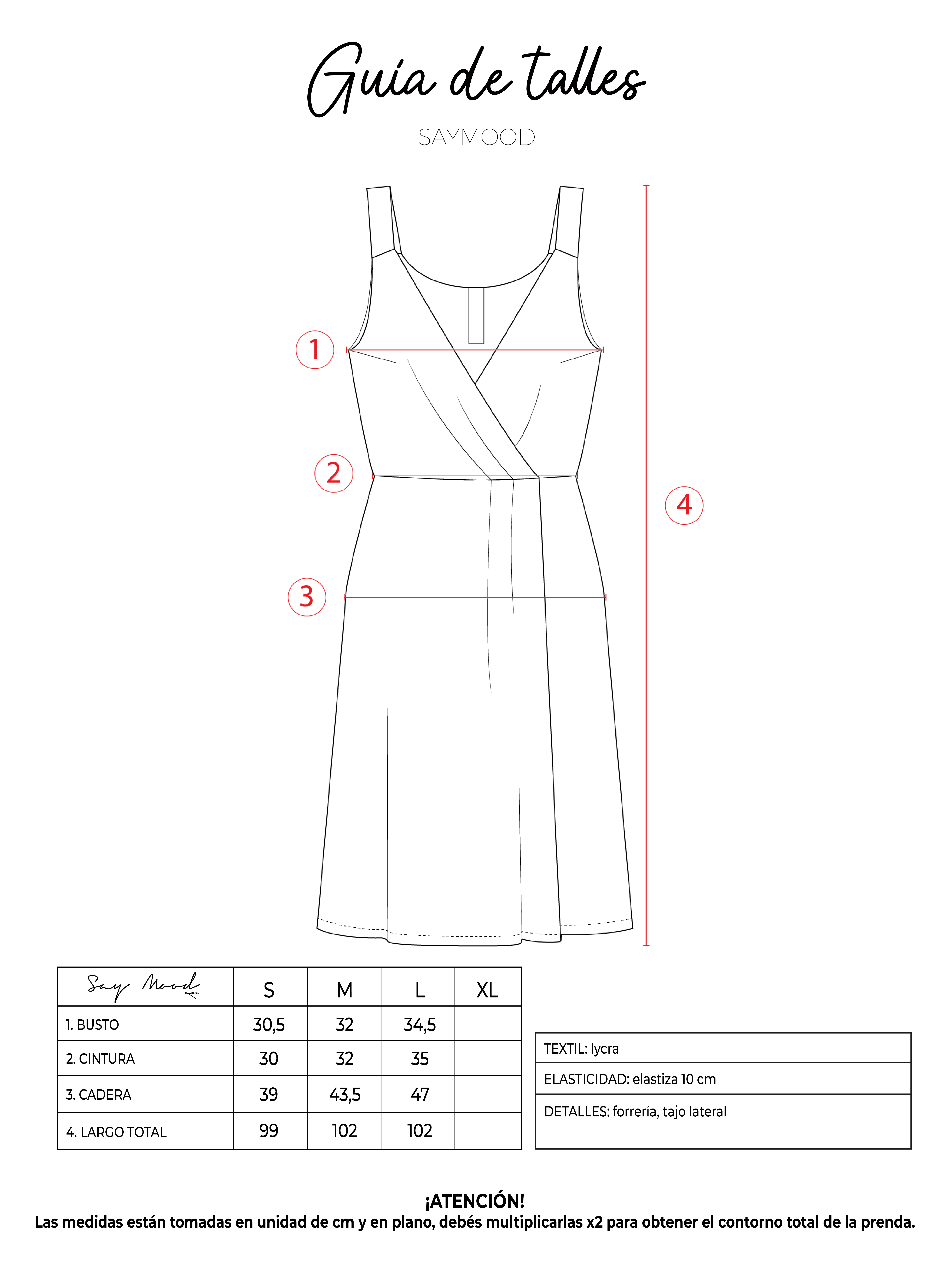 SAYTIPS: chequeá con atención nuestra tabla de talles para encontrar el que mejor vaya con vos. Podés tomar como referencia una prenda similar que tengas para mayor seguridad 😉