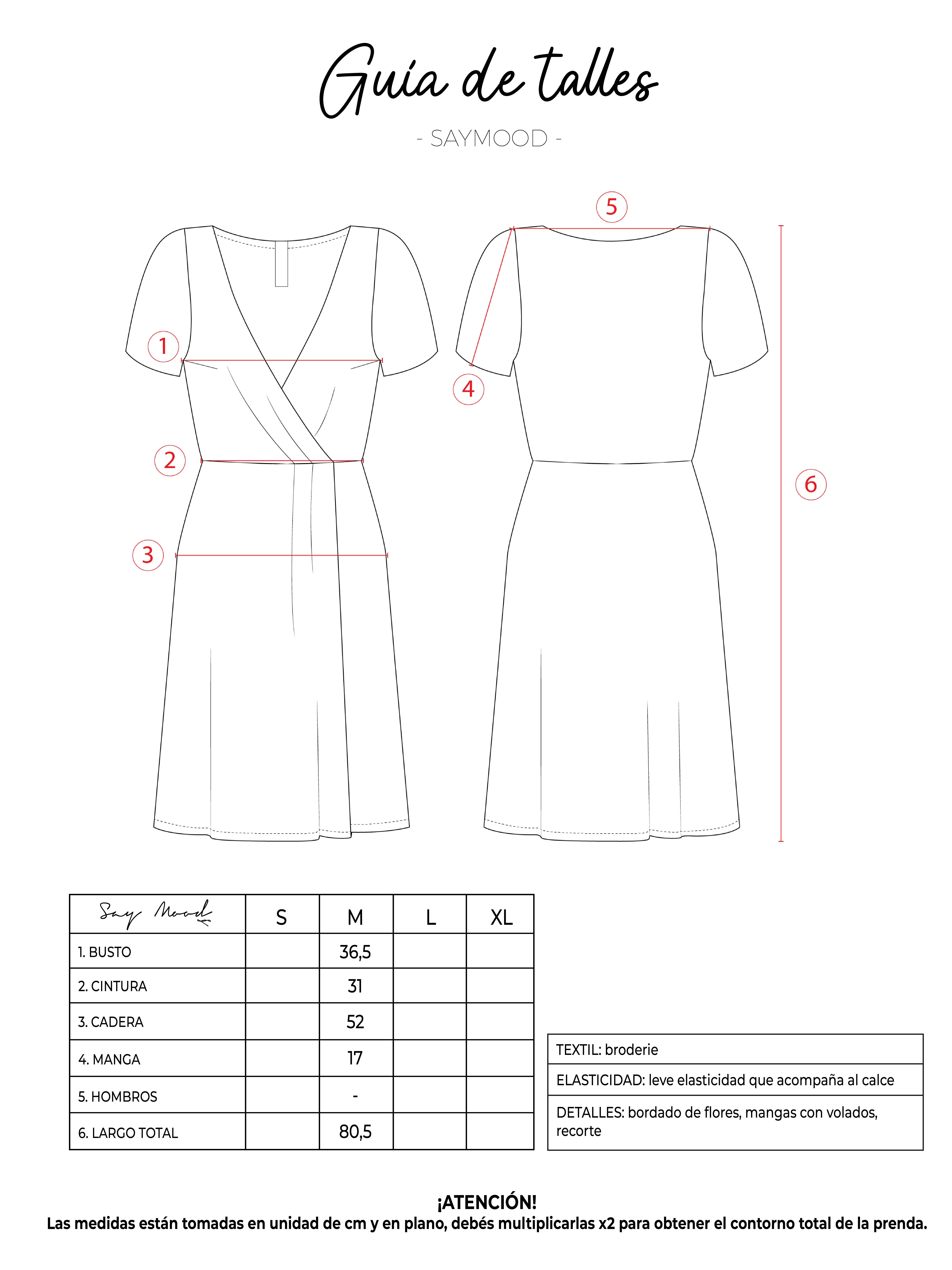 SAYTIPS: chequeá con atención nuestra tabla de talles para encontrar el que mejor vaya con vos. Podés tomar como referencia una prenda similar que tengas para mayor seguridad 😉