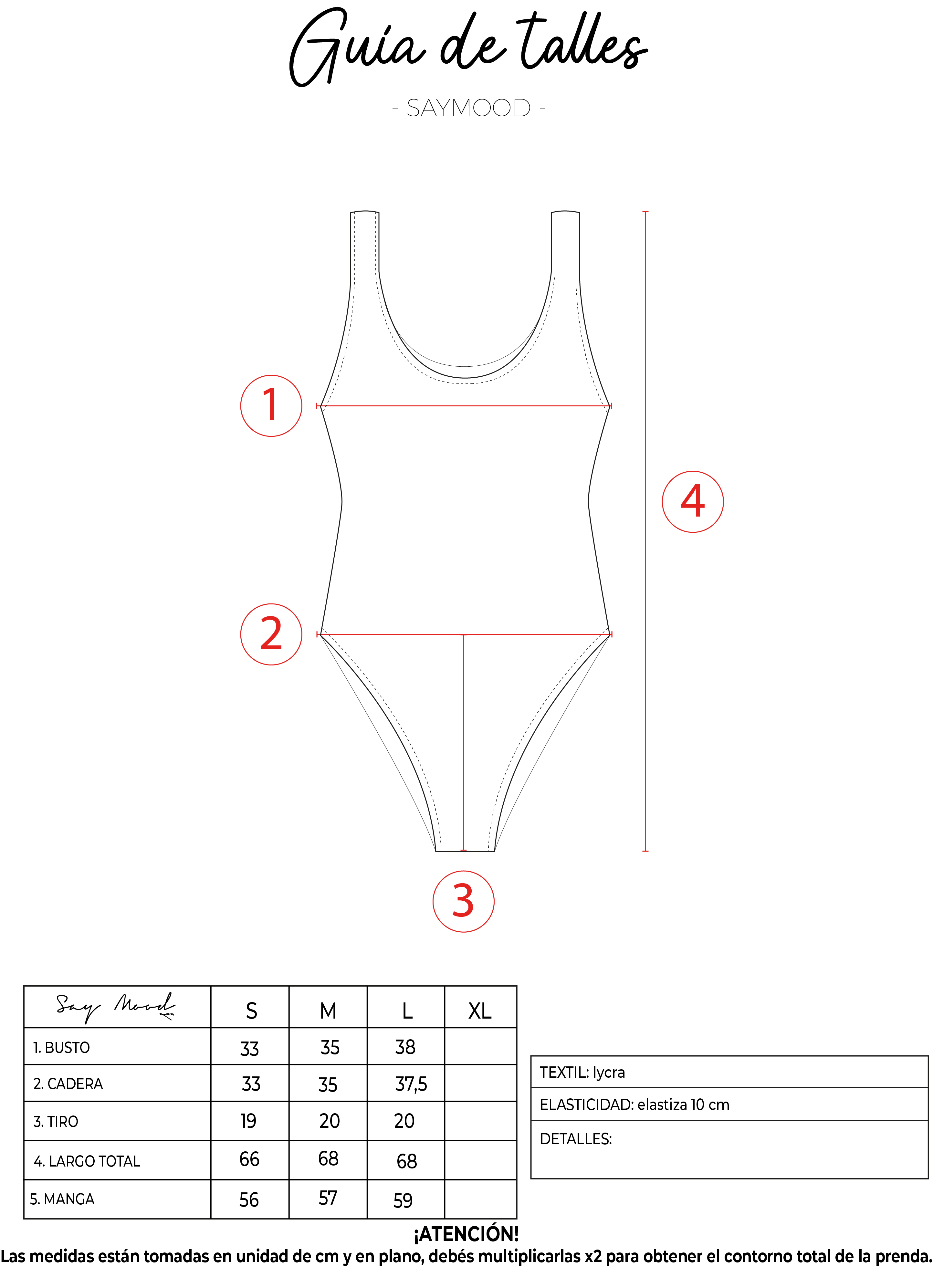 SAYTIPS: chequeá con atención nuestra tabla de talles para encontrar el que mejor vaya con vos. Podés tomar como referencia una prenda similar que tengas para mayor seguridad.