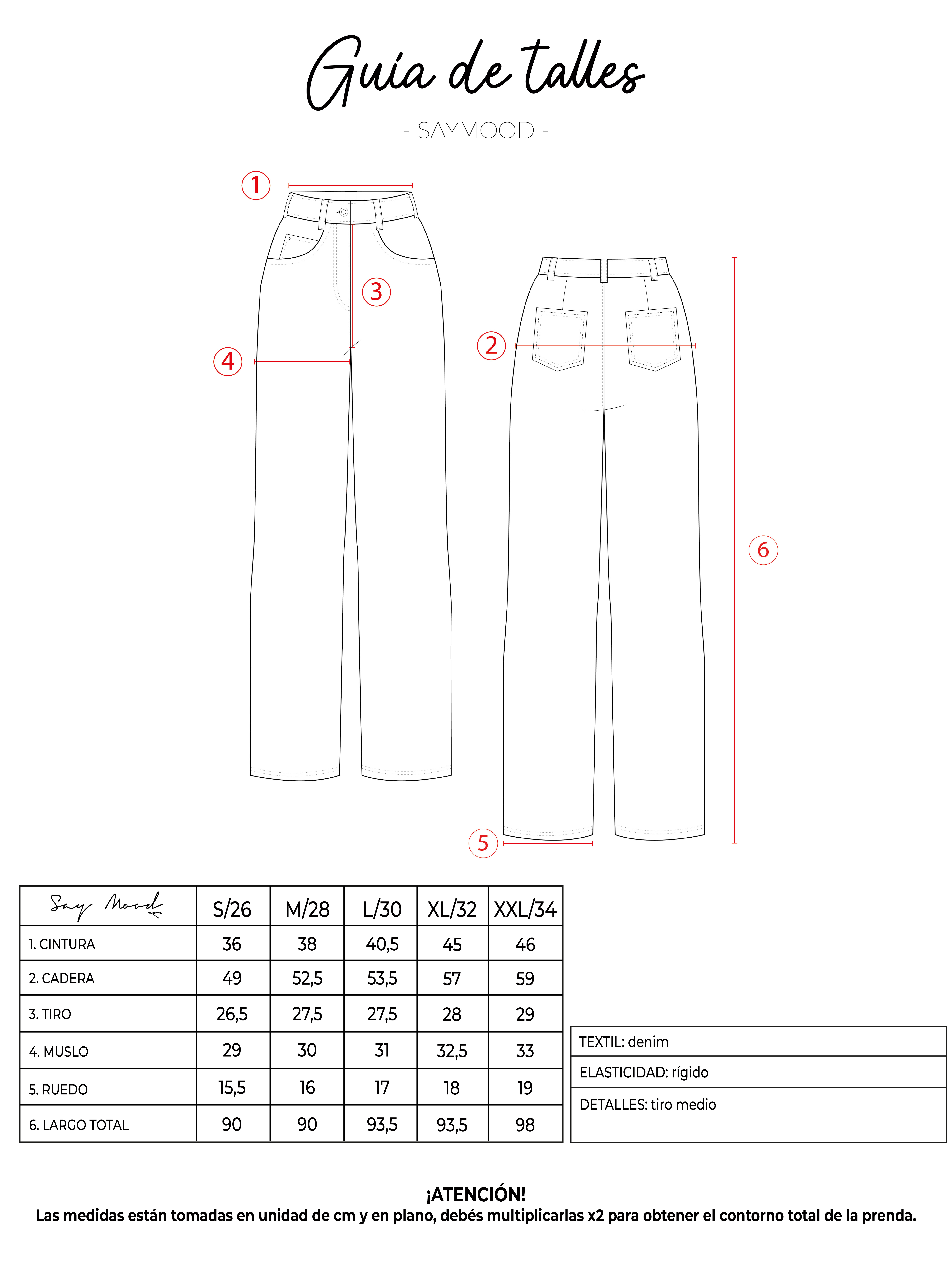 SAYTIPS: chequeá con atención nuestra tabla de talles para encontrar el que mejor vaya con vos. Podés tomar como referencia una prenda similar que tengas para mayor seguridad 😉