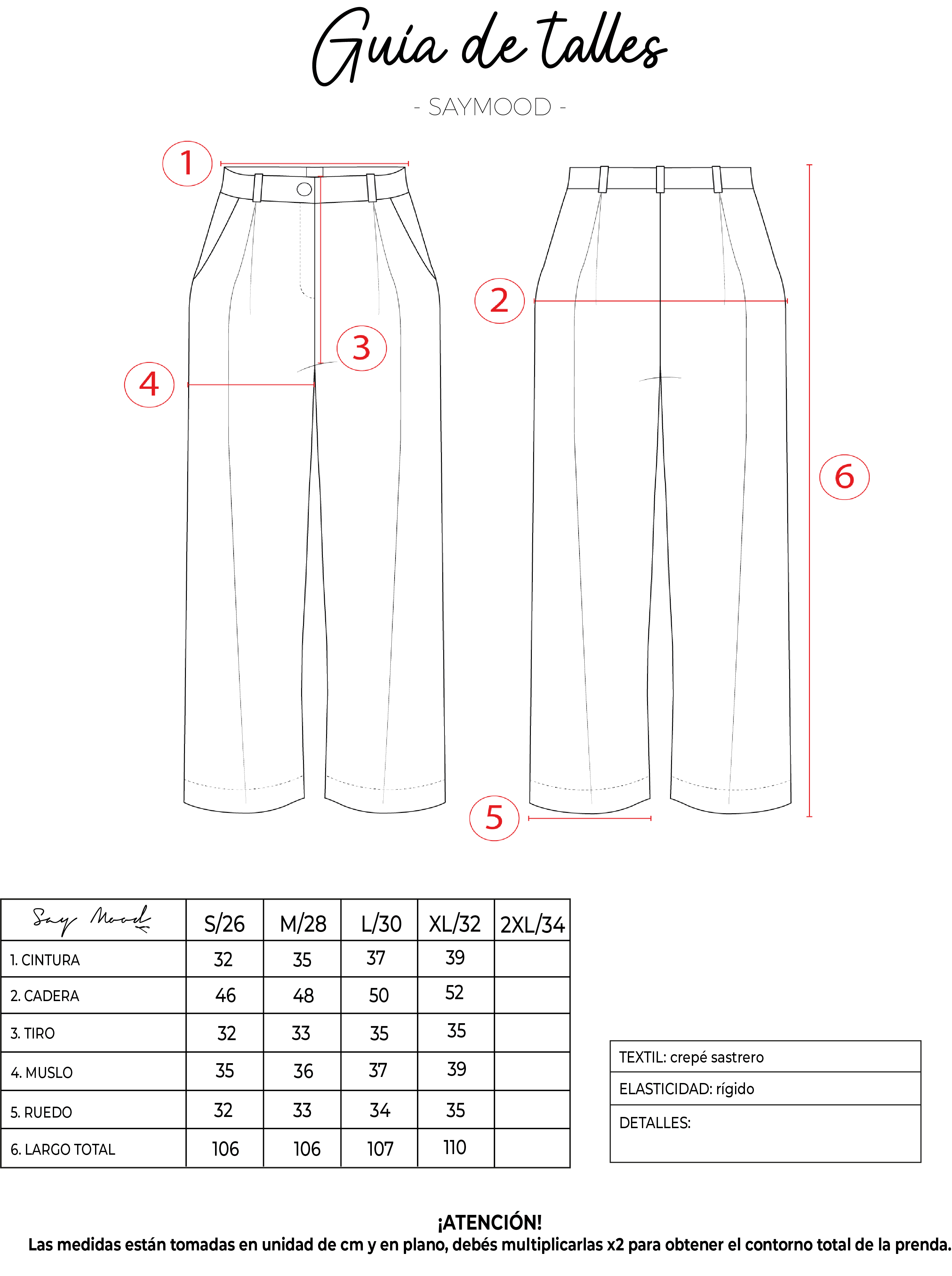 Say Sastrería ... un sastrero moderno y cómodo! se adapta a tu cuerpo y te viste increíble, tiro alto con mucha onda,bolsillos y caída recta. Confeccionado en crepé sastrero, liviano y con una hermosa calidad.