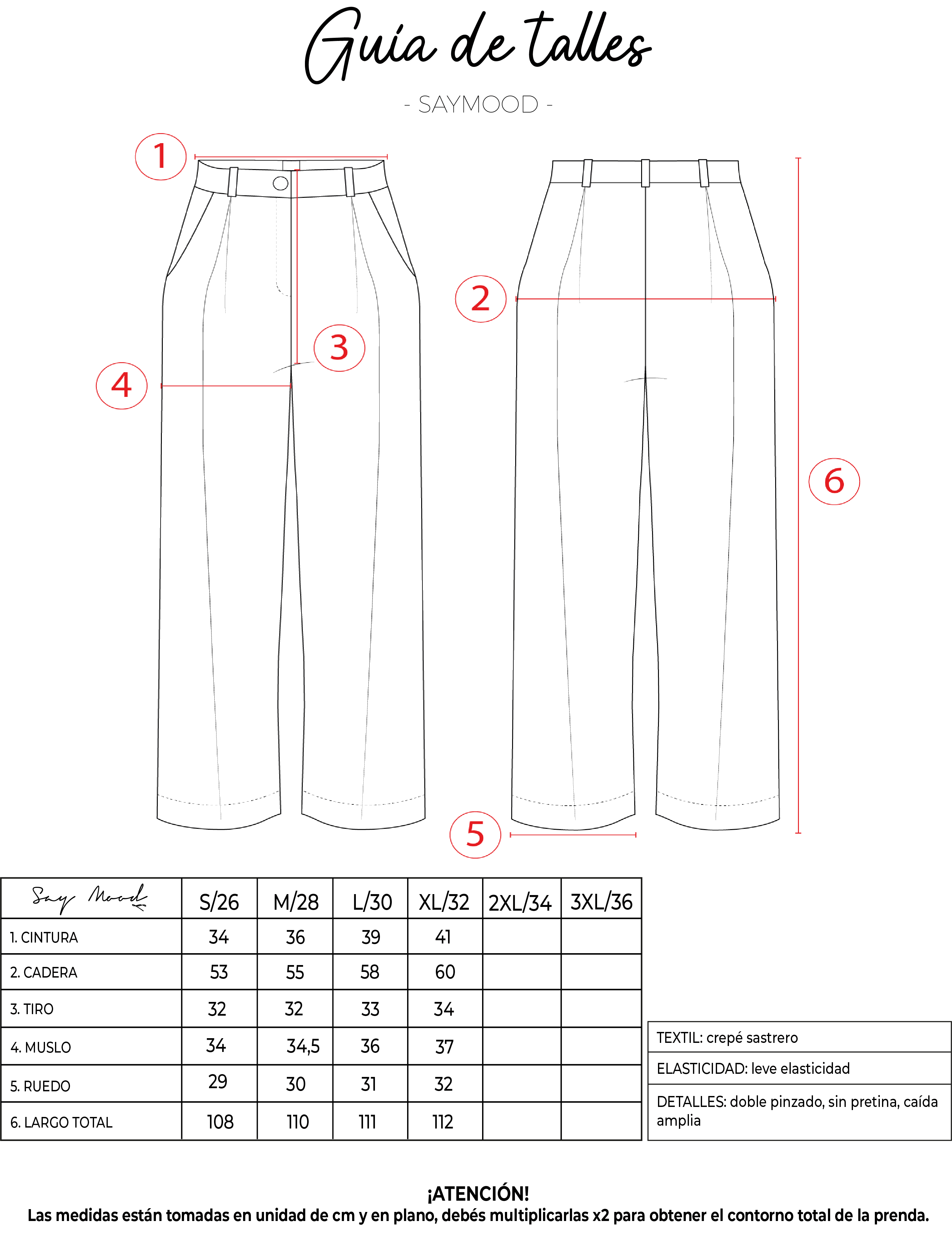 Say Sastrería volvió Riven! con su corte amplio y elegante es perfecto para elevar tu imagen y no dejar de estar cómoda logra un calce perfecto y que marca la diferencia... de tiro alto, sin pretina tradicional pero con botón y cierre + doble pinzado que define una caída amplia y con un hermoso movimiento. Confeccionado en nuestro clásico textil sastrero.